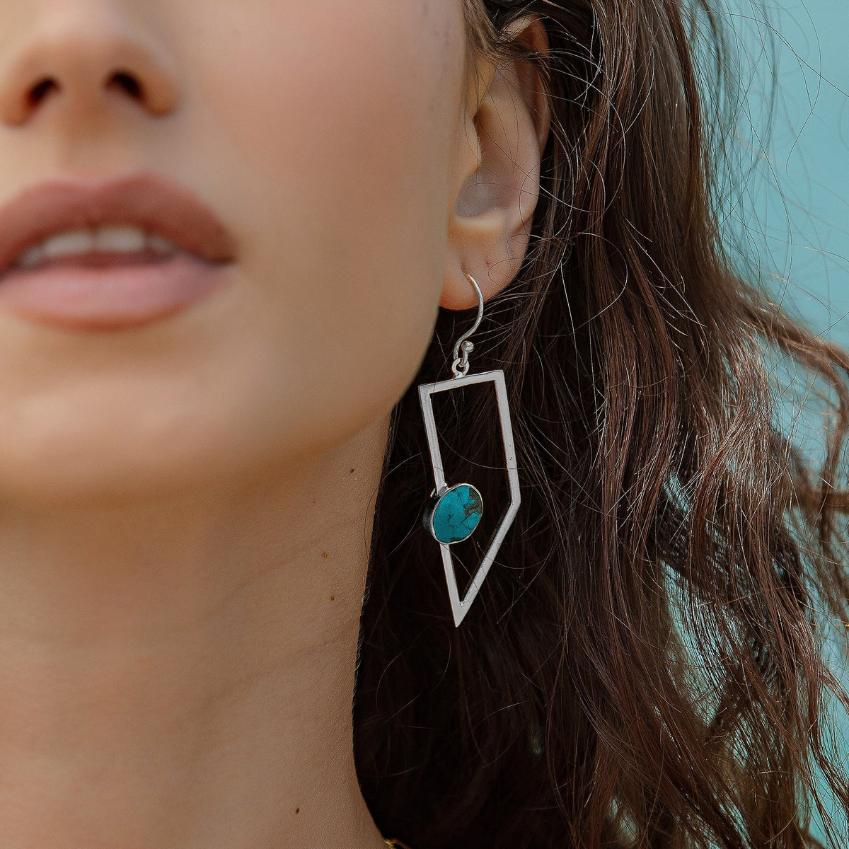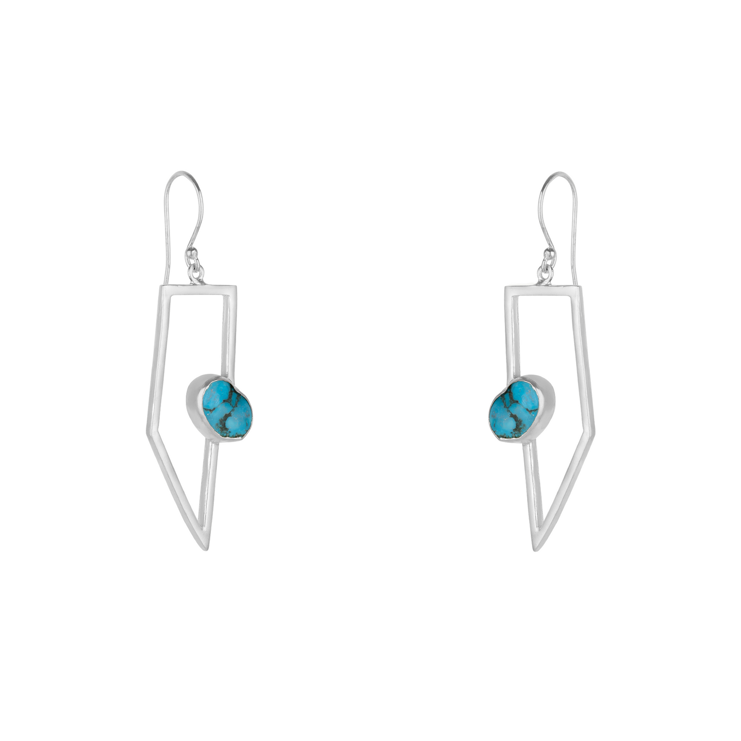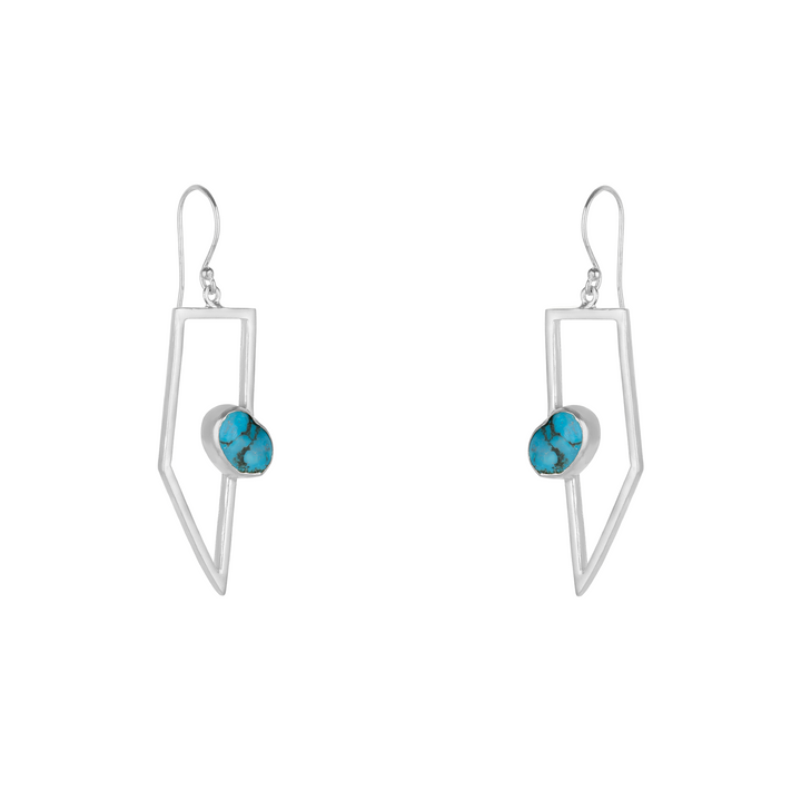 Geometric Oasis Turquoise Drop Silver Earrings