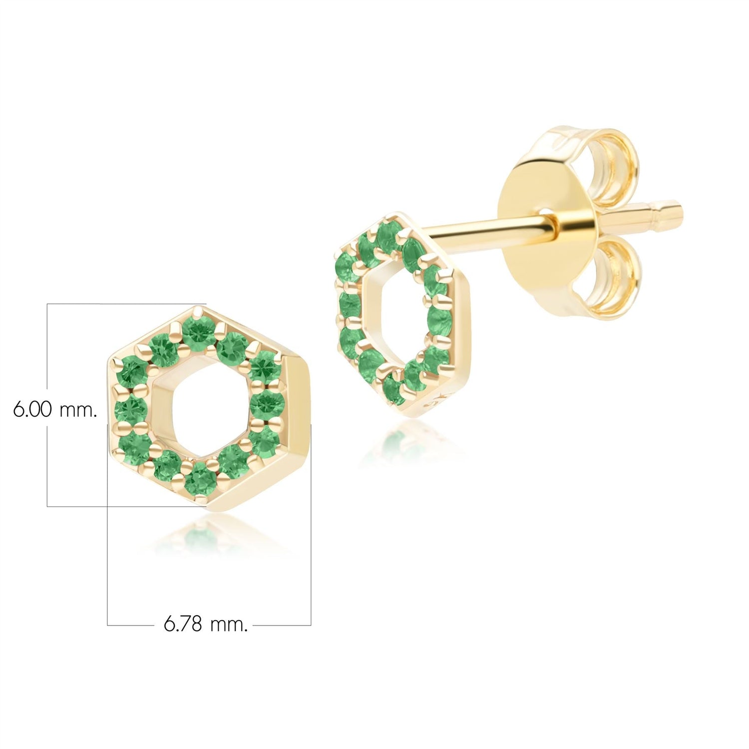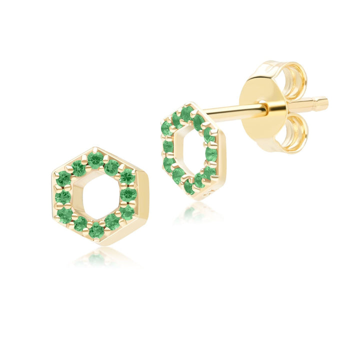 Geometric Hex Emerald Stud Earrings In Yellow Gold
