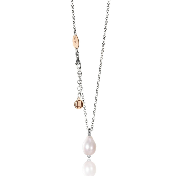 This Sterling Silver Necklace with Baroque Pearl Pendant by Unaloe captures the beauty of imperfection. Each luminous baroque pearl is one-of-a-kind, radiating individuality and timeless elegance. Suspended on a refined silver chain, the necklace strikes a balance between classic sophistication and modern artistry—ideal for both everyday wear and special occasions.