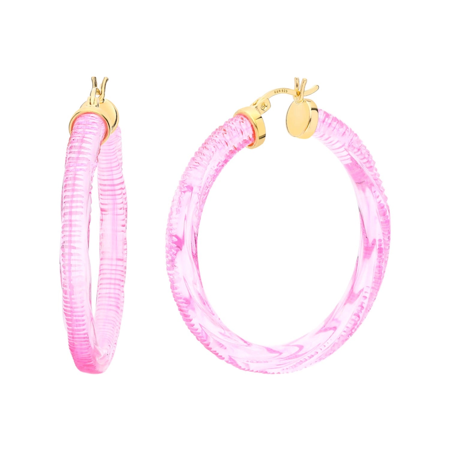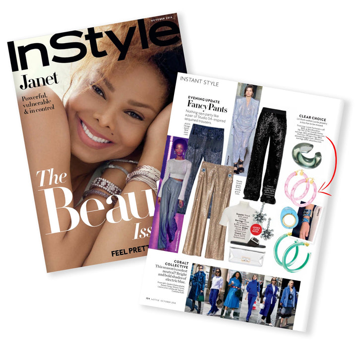 Featured in InStyle Magazine, these lucite hoops are a must have! The hand finished diamond cut sparkles in the light. This elevated lucite hoop design is available in multiple colors to add a pop of color to your day. These earrings are handcrafted Lucite with 14K gold plated sterling silver.