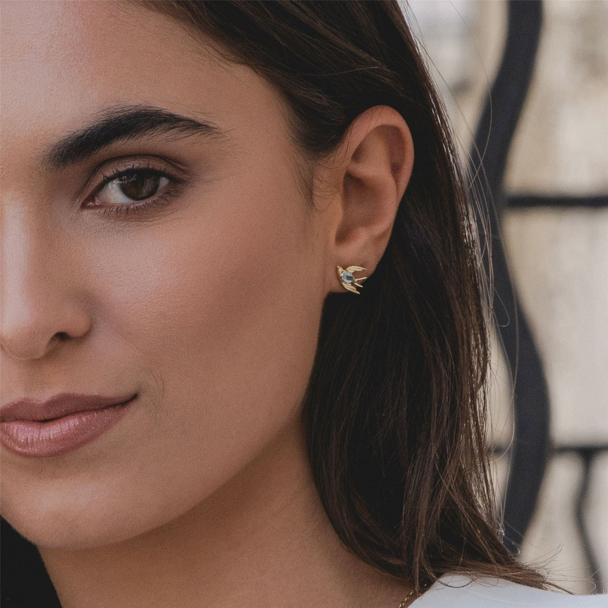 Ecfew Creator Blue Topaz Hummingbird Stud Earrings In Gold Plated Sterling Silver