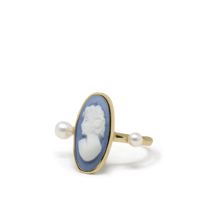 Medea Gold-Plated Sky Blue Cameo And Pearl Ring