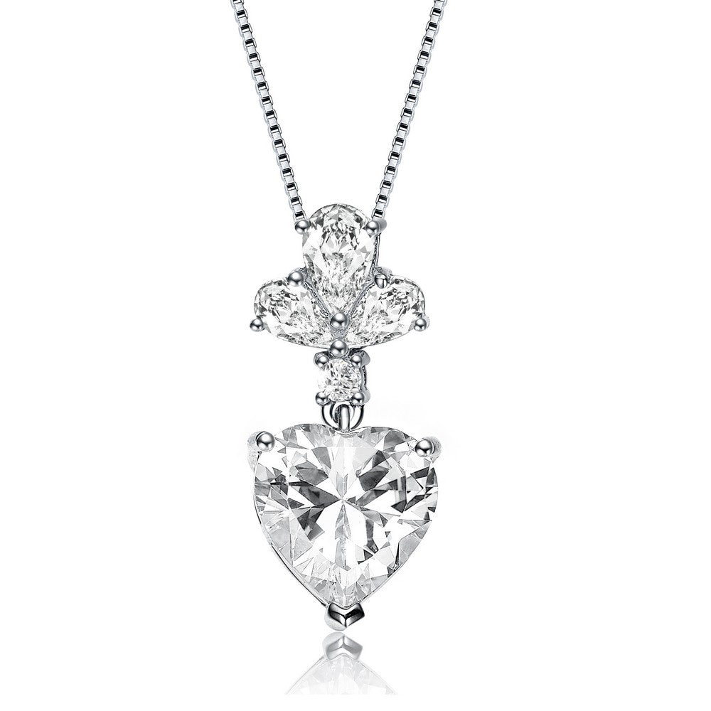 Sterling Silver Clear Cubic Zirconia Accent Heart Shaped Pendant Necklace