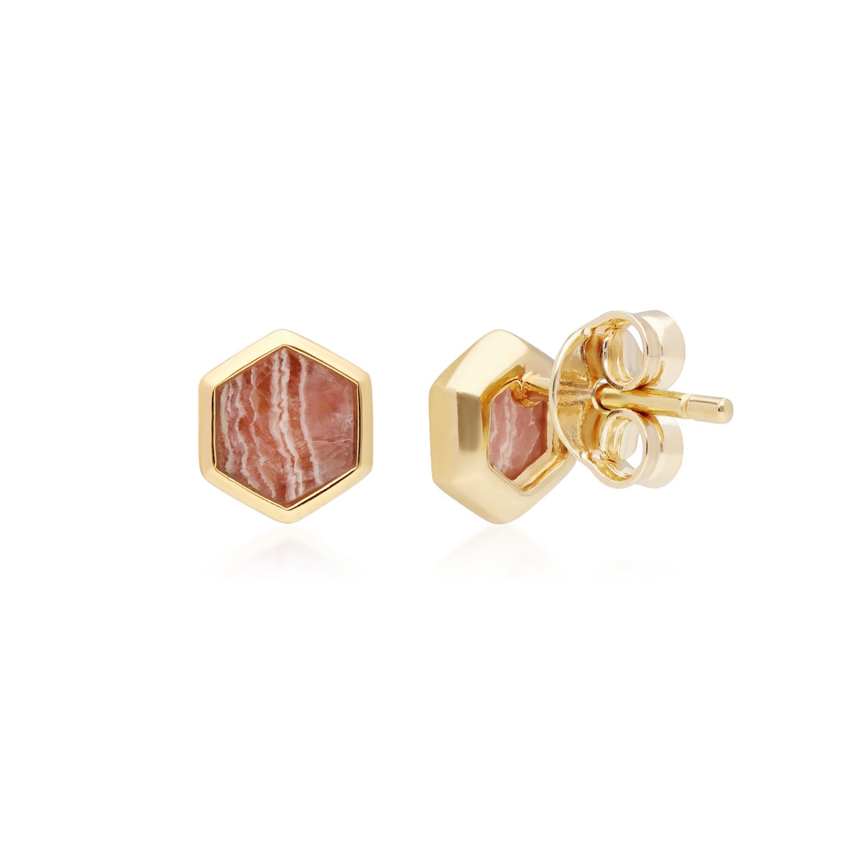Rhodochrosite Hexagon Stud Earrings In Gold Plated Silver