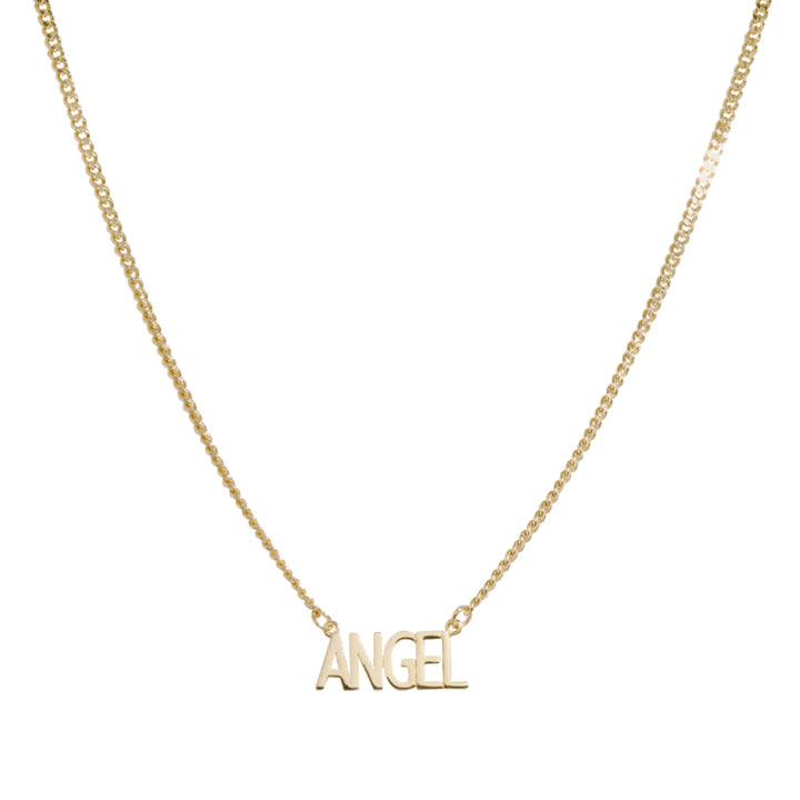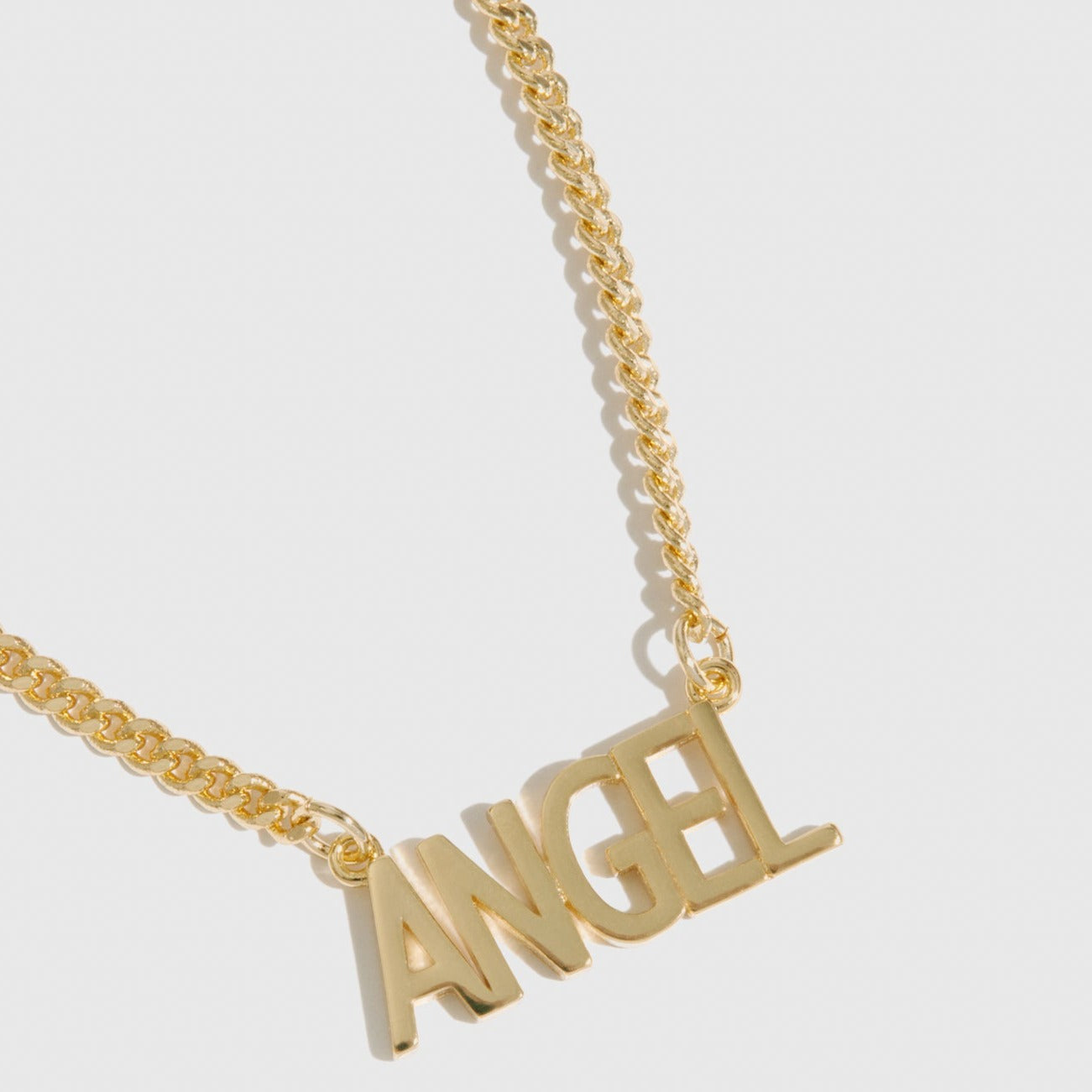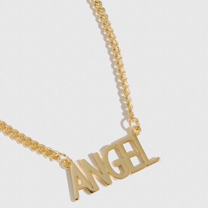This Angel Necklace Gold by Drae Collection is a nameplate-inspired necklace for those who embrace an "Angel Energy" mindset. This piece is a sign of protection, designed to guide you on a daily basis. The thick layer of solid 14k Gold plated brass offers the look and feel of high-end jewelry at an accessible price. With an e-coat for extra luster and durability, this necklace is resistant to tarnish and water, making it a long-lasting and beautiful symbol of guidance and strength.
