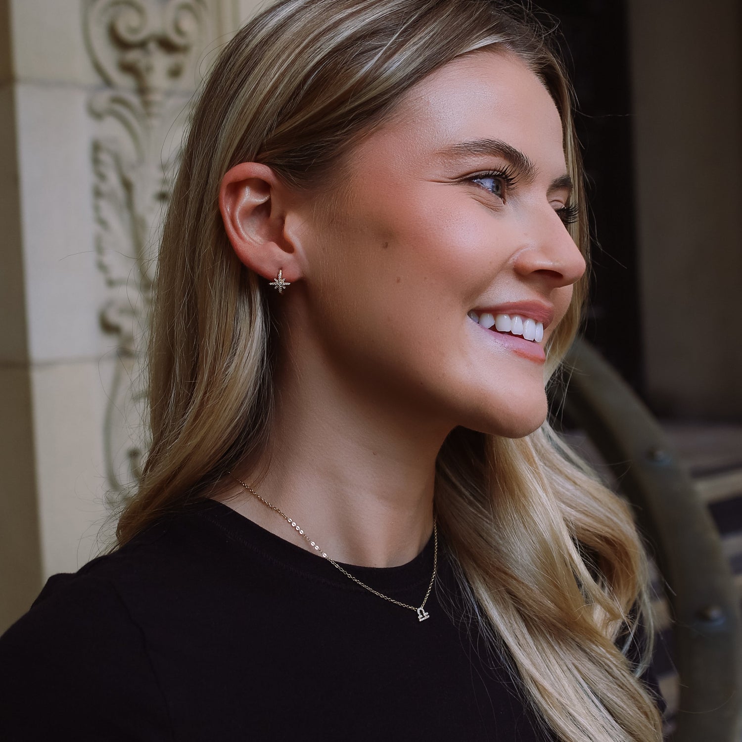 Shine bright like a diamond Meet Ivy! The new classic gold plated huggie hoops with just enough sparkle to make you shine. Designed with a crystal starburst feature, they make the perfect base for stacking with more earrings from the Luna Charles collection.
