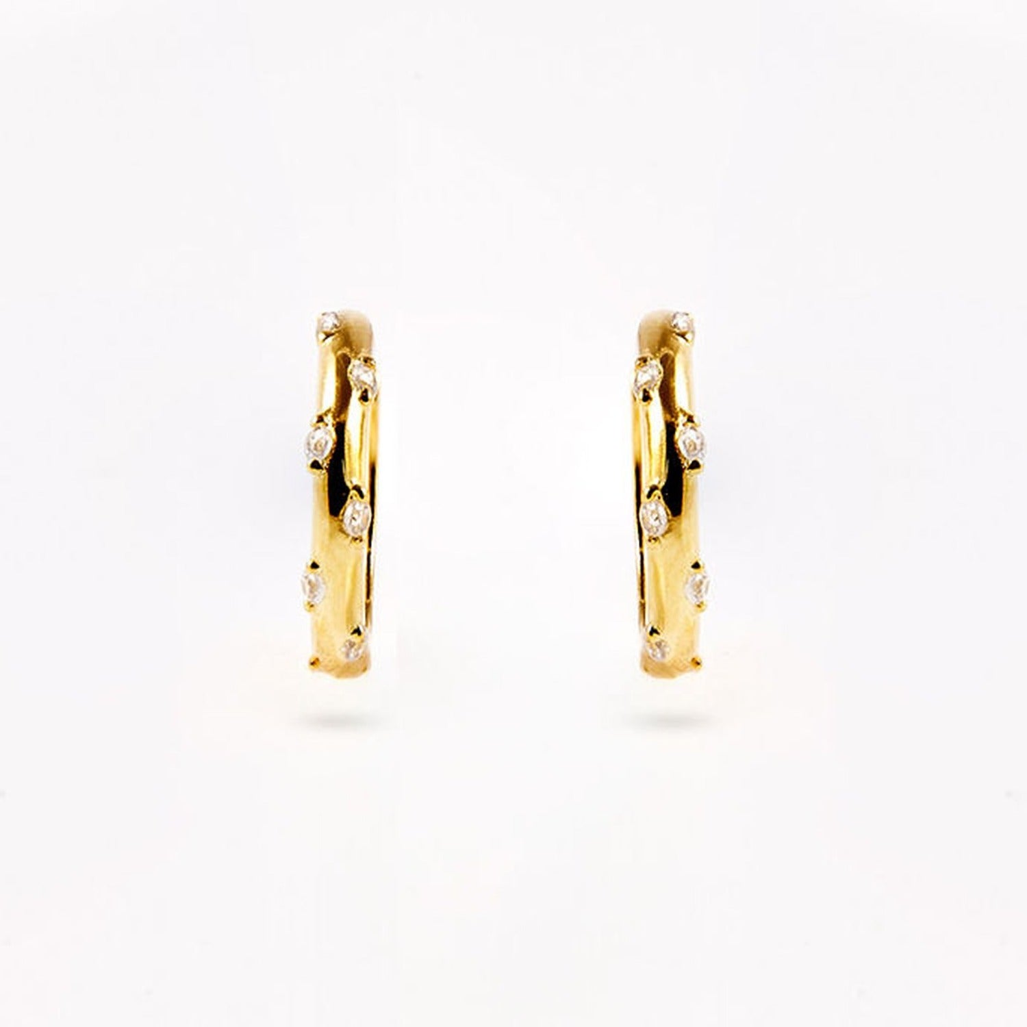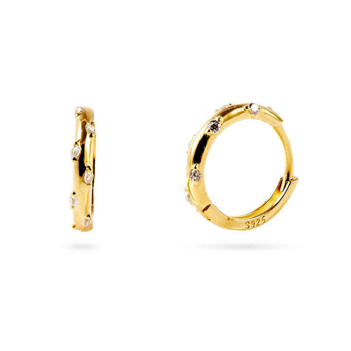 Introducing our beautiful Meant To Be Earrings, the perfect addition to your jewellery collection. These dainty 925 sterling silver huggie hoop earrings are 18K gold plated and delicately studded with cubic zirconia. These earrings are ideal for ear stacking, allowing you to mix and match with other pieces for a personalised look.