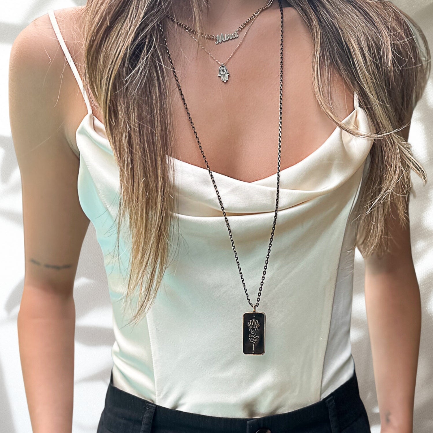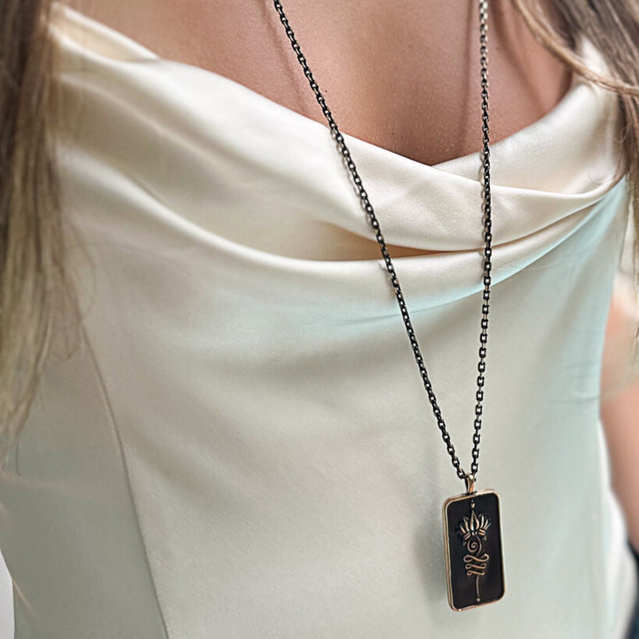 This Love Yourself Unalome Necklace Gold by Ebru Jewelry is more than adornment—it is a mantra of self-love. The unalome symbol, spiraling through life’s twists and culminating in a straight path of peace, is paired with the empowering message: “When you love yourself, you become limitless.” A meaningful talisman of growth and transformation.