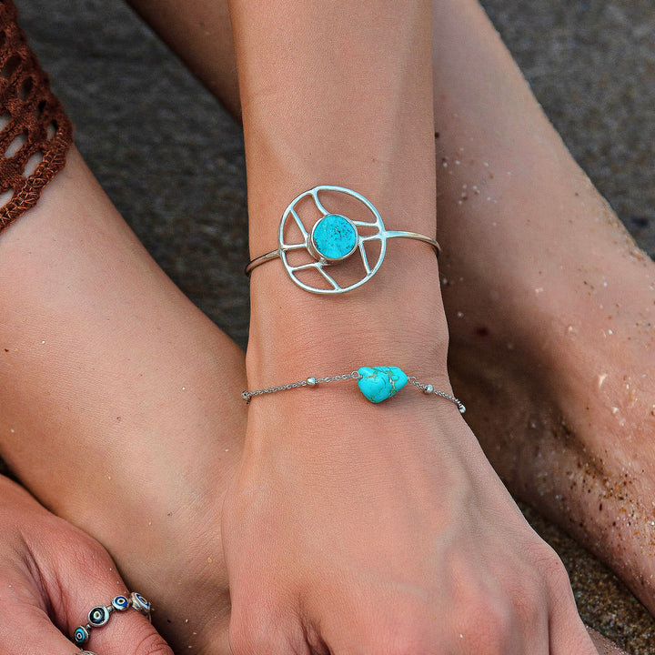 Oceanic Orb Adjustable Turquoise Cuff Bangle In Silver