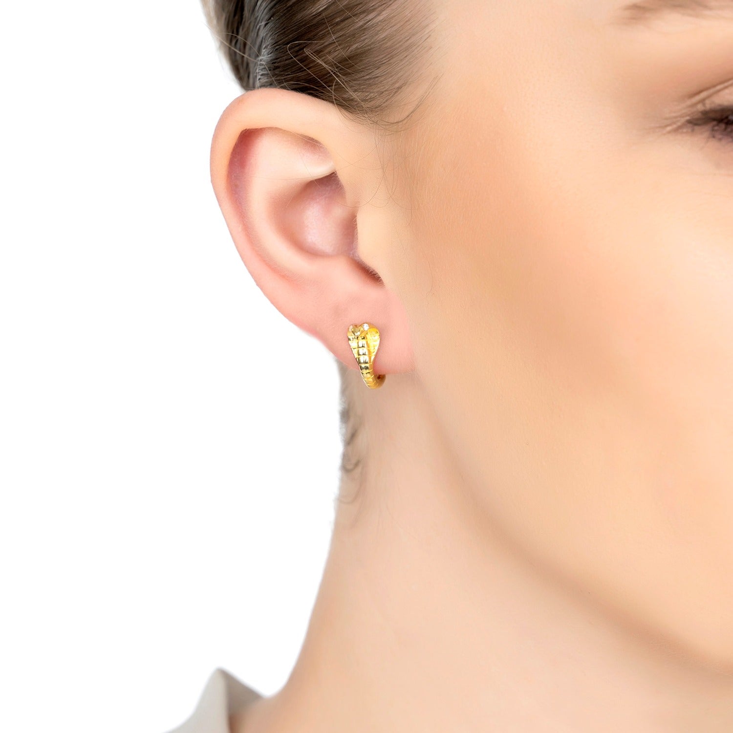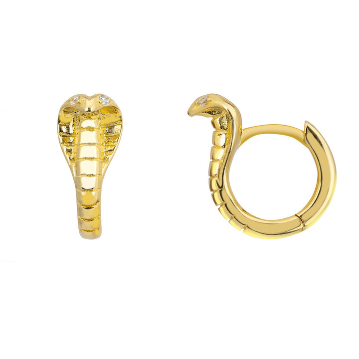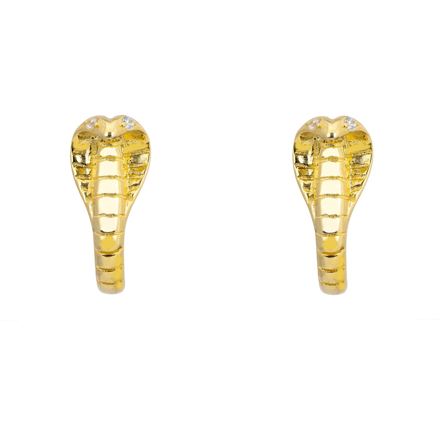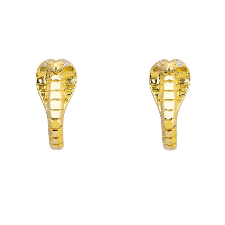 Discover the allure of our Gold Cobra Huggie Hoop Earrings. These earrings capture the powerful imagery of a striking cobra. The textured finish mimics the snake’s scales, creating a captivating design. Each cobra is adorned with two small zircon eyes, adding a touch of sparkle. In jewellery, Cobras often represent rebirth and guardianship, adding a layer of symbolic significance to these stunning pieces. Embrace the mystique and elegance of the cobra with these unique earrings.