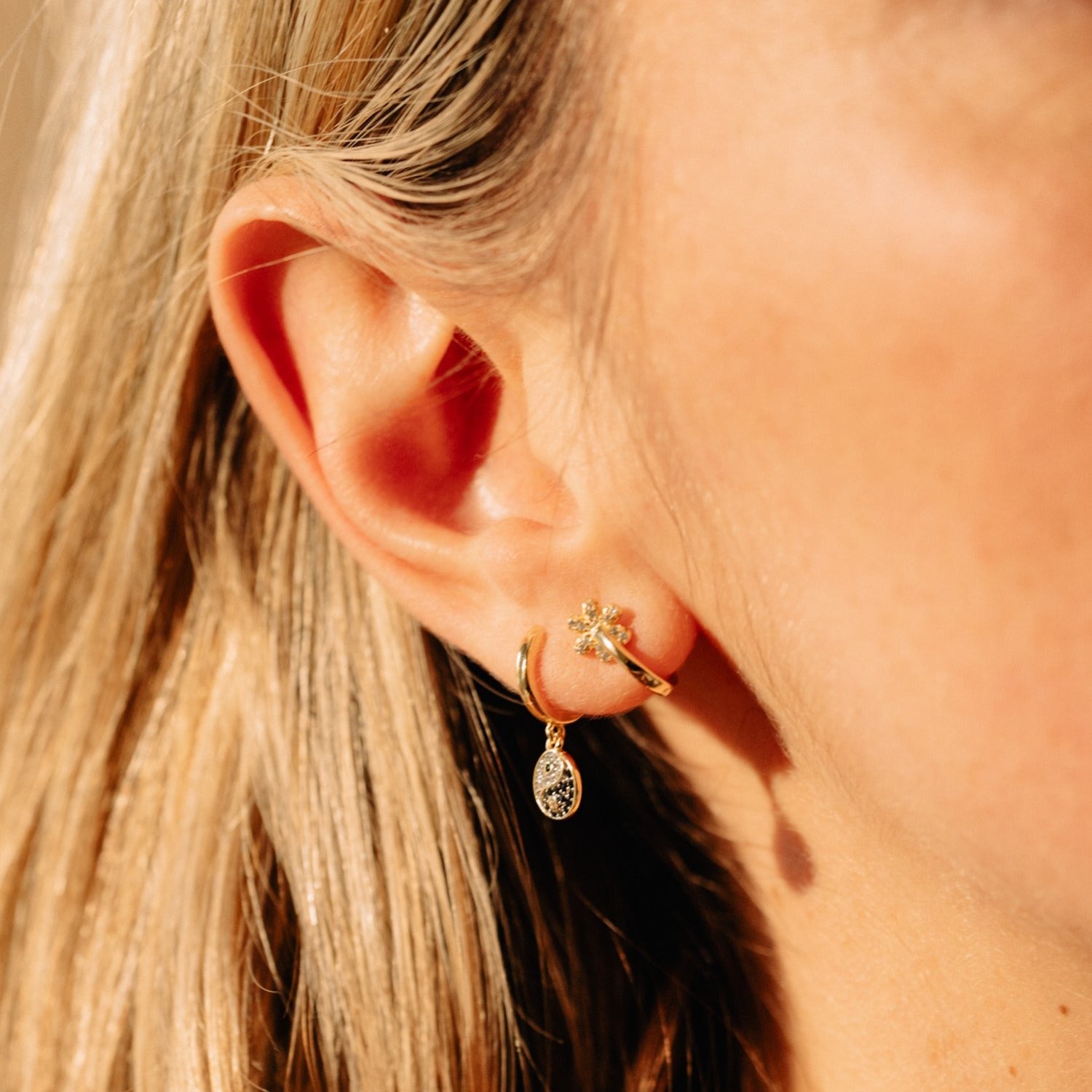 Introducing our stunning Grow Untamed Earrings, the perfect accessory for those looking for a touch of wild elegance. Crafted from 925 sterling silver with a 14k gold plating, the huggie style features a subtle flower detail. Whether worn on their own or paired with other pieces, these earrings are sure to make a statement.