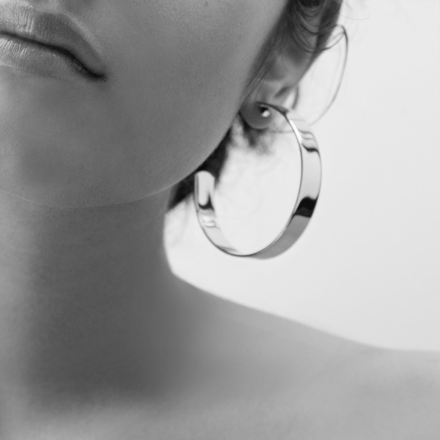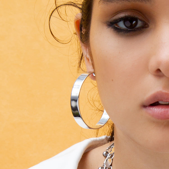 These Liberty Hoops Large Silver by Biko are a sculptural and light-reflecting accessory. Their gentle twist brings light to the face, making them a perfect addition to any look. Made from rhodium plating and hypoallergenic posts, these hoops are durable and comfortable for everyday wear. They are designed to be worn often and loved always, and their unique design makes them a timeless addition to your jewelry collection.