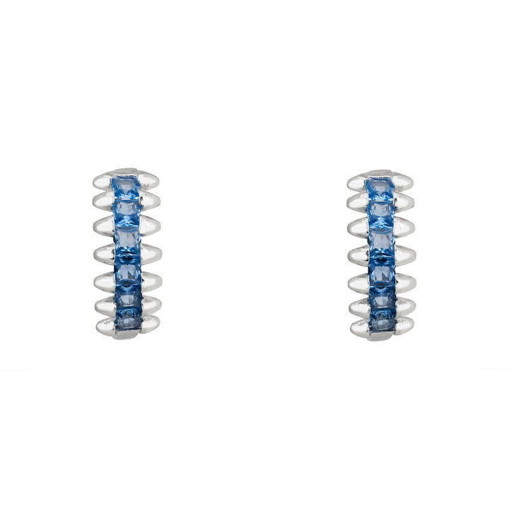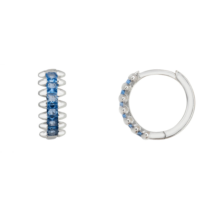 Brighten up your jewellery box with our new Huggie Hoop Earrings London Blue Topaz Silver. Perfect for everyday wear, these stylish earrings add a touch of sophistication and a pop of colour. These earrings feature beautiful lab-created, baguette-cut London Blue Topaz gemstones along the front, making them a statement piece you'll love to show off! Blue Topaz is the birthstone for December, celebrated for its beauty, durability, and vibrant colour, known to symbolize love and loyalty. These petite earrings effortlessly transition from day to night. Whether you're out shopping or enjoying dinner with friends, you'll look simply stunning.