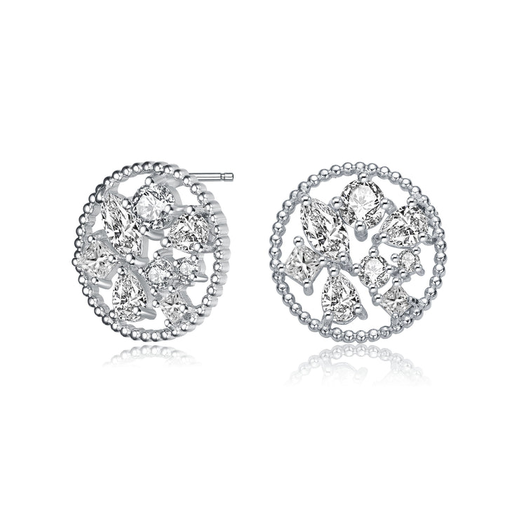 Sterling Silver Rhodium Plated Halo Multi Shape Cubic Zirconia Round Earrings