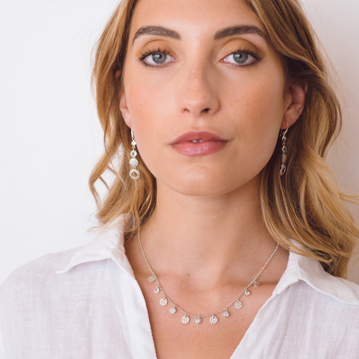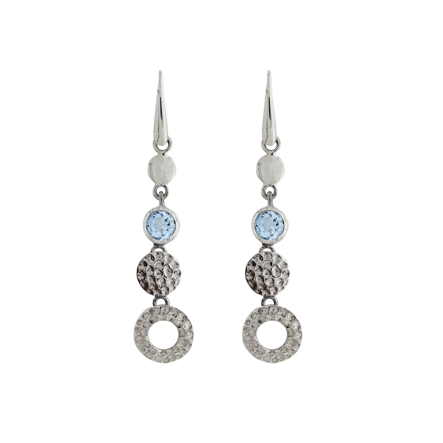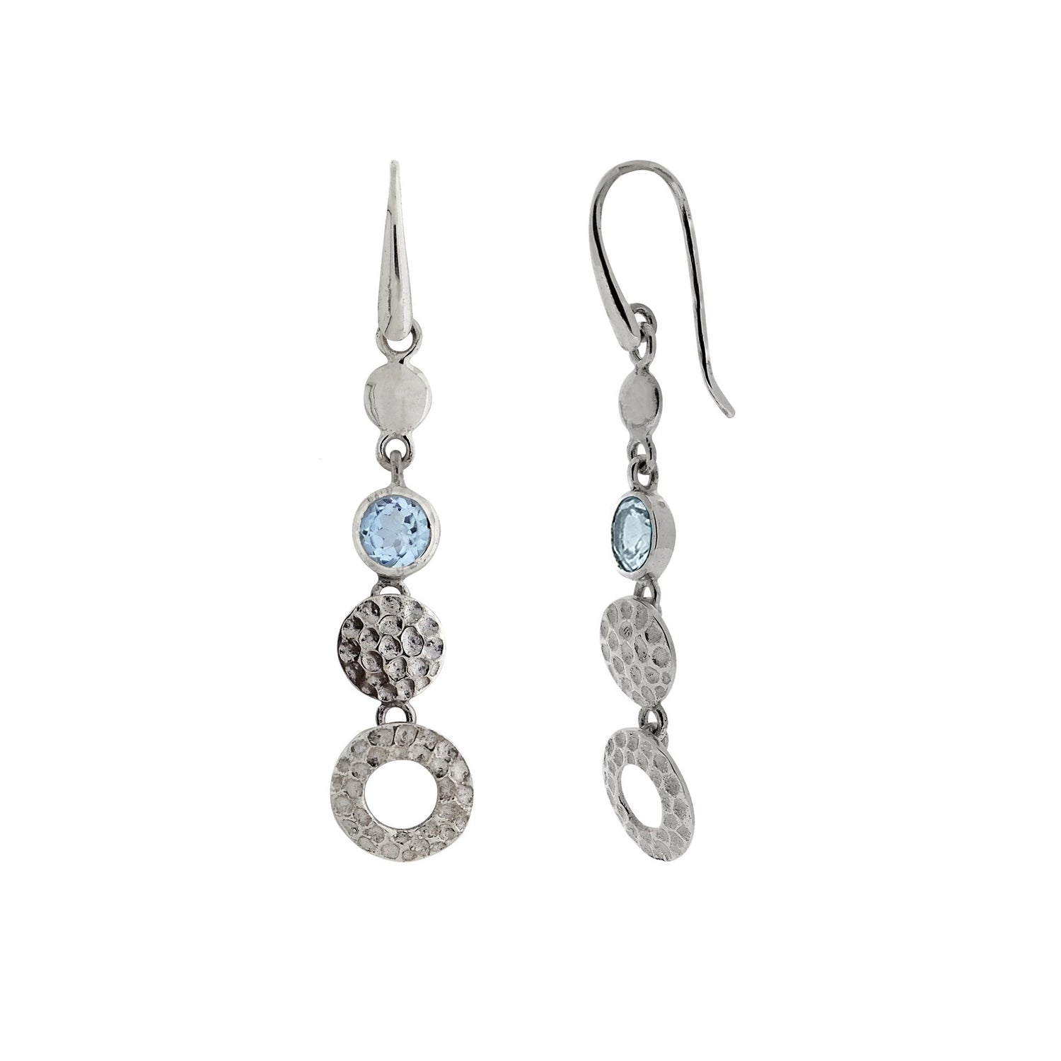Invite love and prosperity into your life with the Lakshmi Blue Topaz Drop Earrings. Inspired by Lakshmi, the Hindu goddess of wealth and beauty, these November and December birthstone earrings will make a welcome addition to any outfit, with both polished and hammered silver discs and genuine blue topaz gemstones to help you manifest good fortune. As the consort of God Vishnu, Lakshmi remains one of the most popular goddesses worshipped in Hinduism today. These earrings are a tribute to her and every goddess who wears them, and as such, they belong in every spiritual jewellery collection.