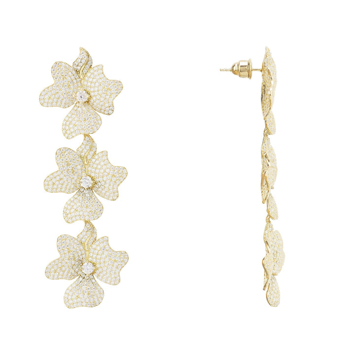 Jasmine Flower Triple Drop Earrings Gold