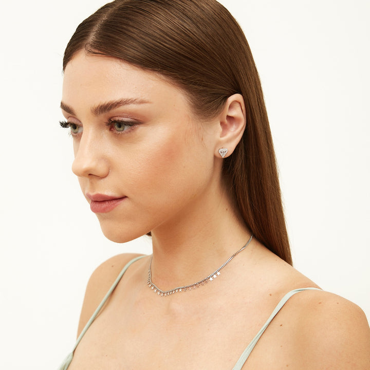Let’s show off your feminine side by styling these Diamond Stud Earrings that beautifully symbolize your inner love and purity. Created in a 925 recycled sterling silver metal, it elegantly highlights a classic diamond shape stud embellished with minimal yet sparkling cubic zirconias- all wrapped in a lustrous body. It has a post-back lock for a secure and comfortable put-on and take-off experience. These sophisticated ear studs come in gold and silver tones- so choose your favorite one to accent your other everyday jewelry pieces. Style it with your cocktail dress, maxi, long frock, denim jeans, or high-heels for a stand-out appearance. Furthermore, surprise your loved ones, family, and friends with these stud earrings as a token of everlasting love.