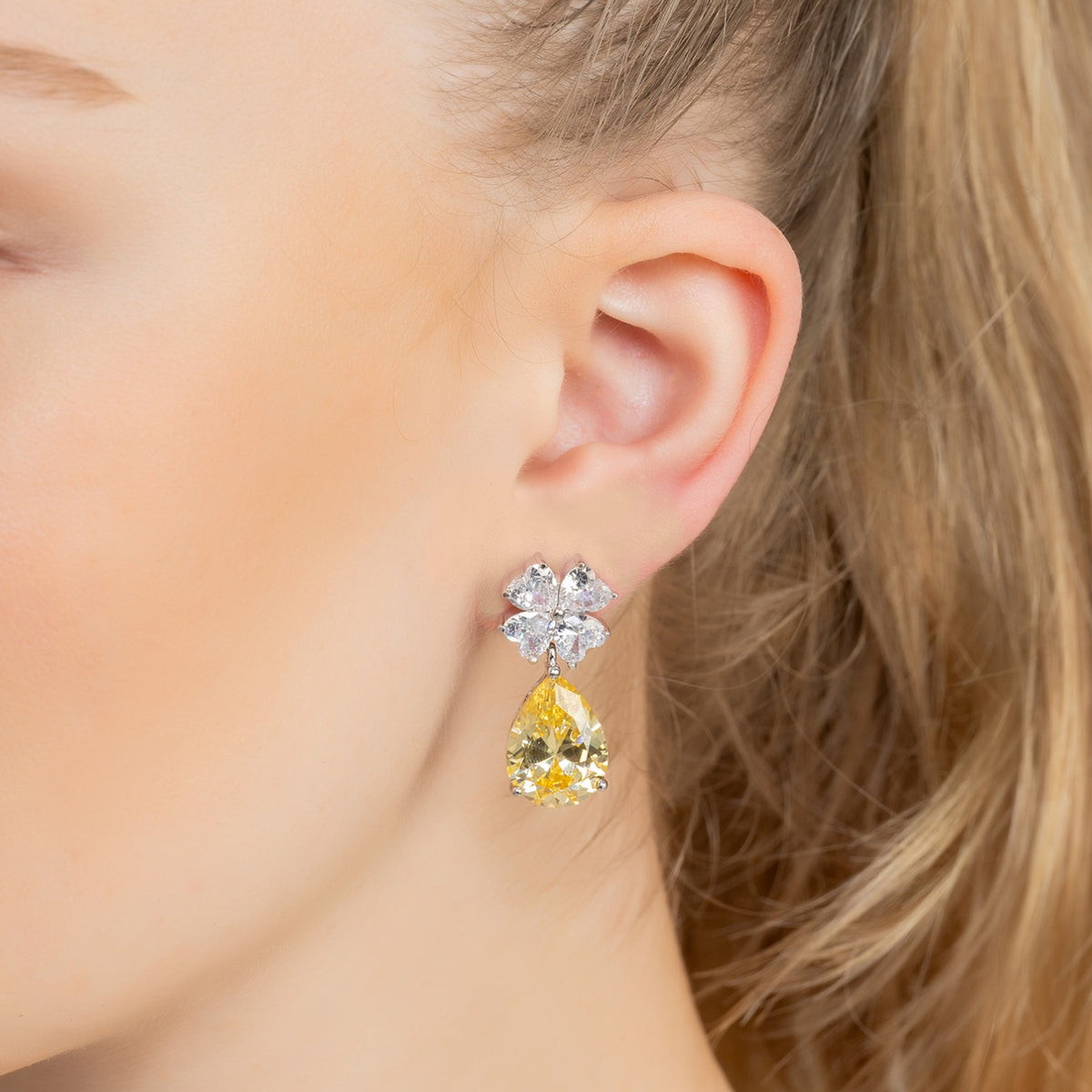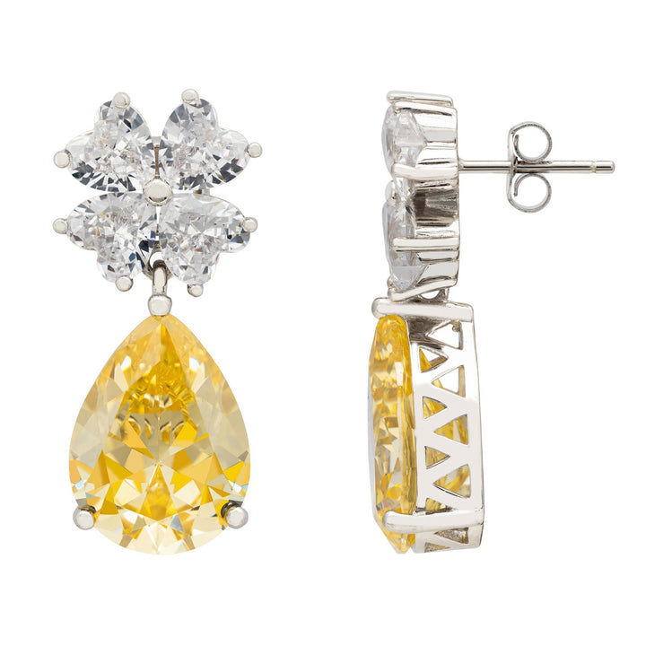 Add a classic touch of glamour to any outfit with the Victoria Teardrop earrings in silver and yellow Topaz! These stunning earrings are crafted with excellence and feature beautiful lab-grown Topaz gemstones. This shimmering pair of delicate teardrop-shaped earrings are perfect for those special occasions like parties, weddings, and events when you want to look your best. The ornate, fretwork design, silver setting adds a touch of uniqueness and elegance while the top piece with its simulated diamond accented floral design ensures that you certainly won’t go unnoticed. The yellow Topaz gemstone has long been associated with prosperity, success, and good fortune. It is also believed to bring abundance and creativity into the wearer’s life.