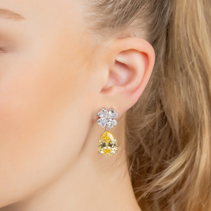Victoria Teardrop Earrings Silver Yellow Topaz
