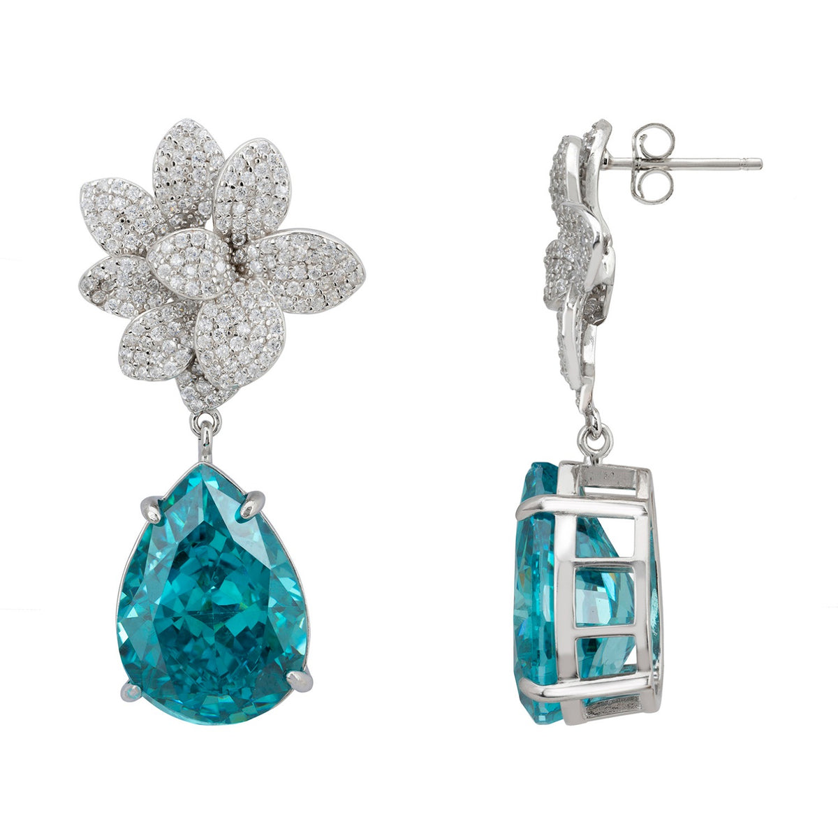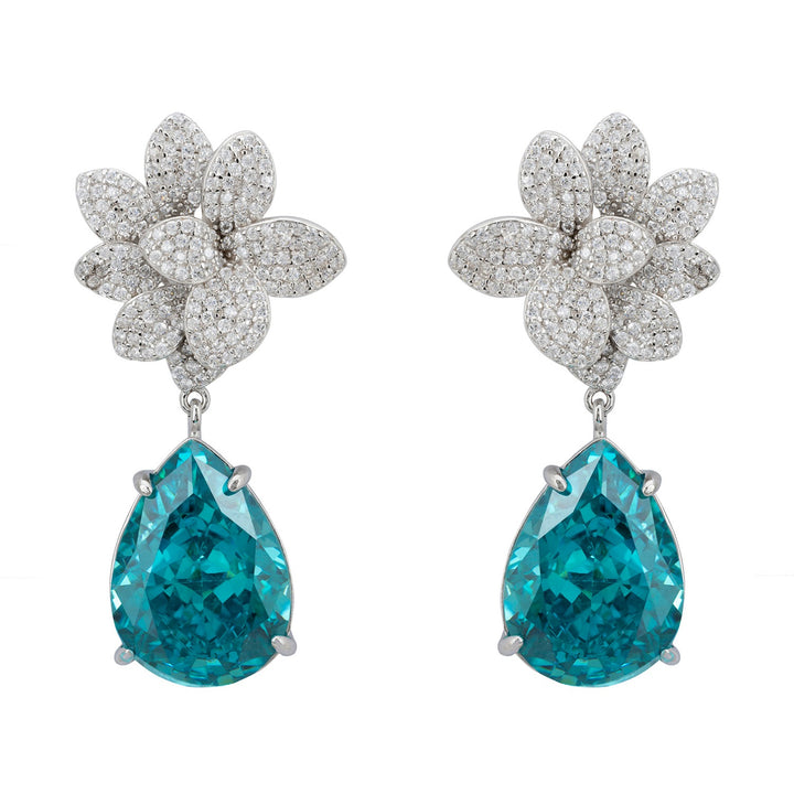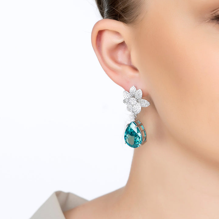 The Orchid Flower Teardrop Aquamarine Earrings are a stunning statement of elegance and grace. The floral-inspired design at the top, adorned with sparkling cubic zirconia, celebrates the beauty of nature and is perfectly complemented by a teardrop-shaped lab-created aquamarine gemstone that dangles below. Aquamarine, the birthstone for March, is cherished for its serene blue hues, symbolizing calmness, clarity, and protection. Often associated with the soothing essence of the sea, it brings tranquility and a sense of peace to the wearer.
