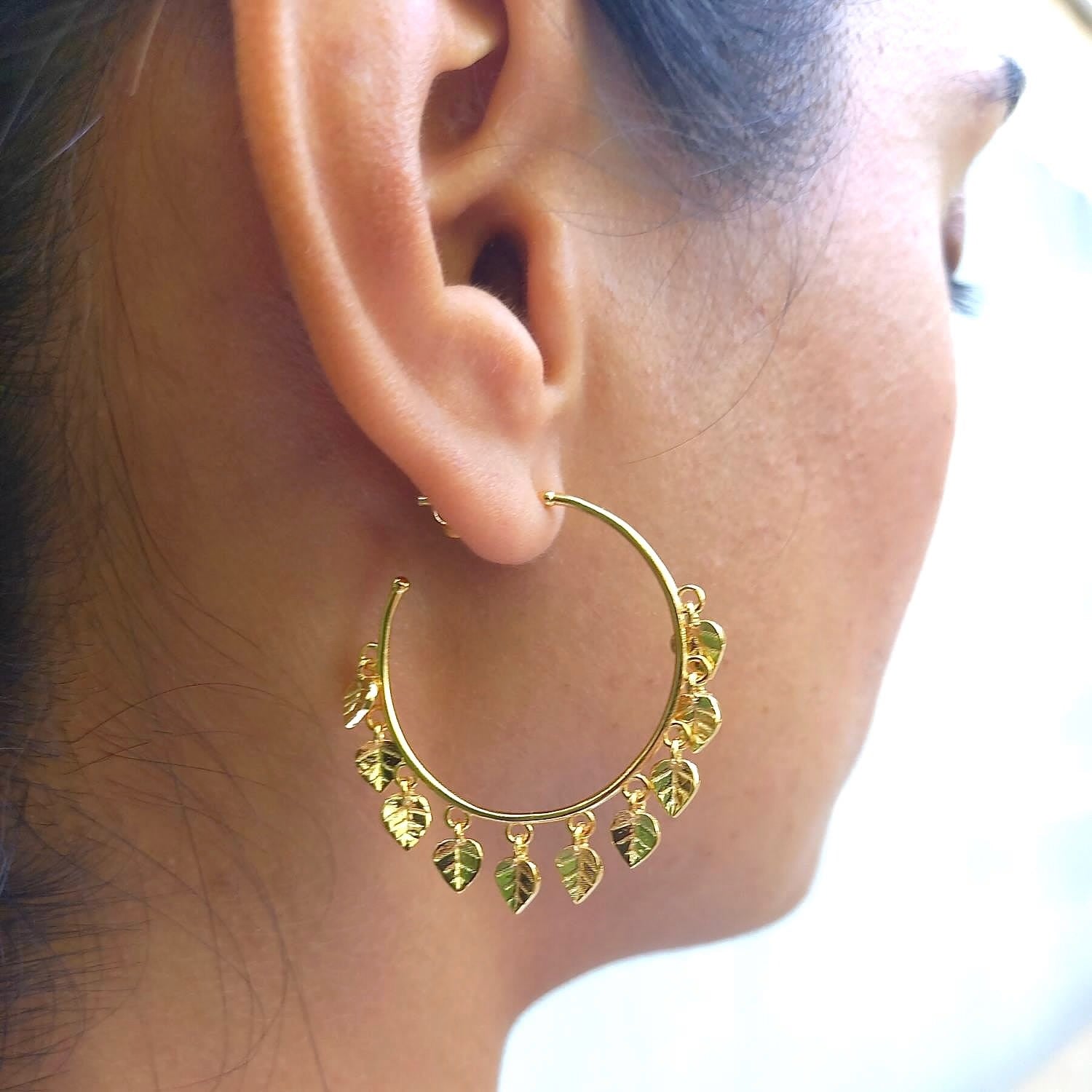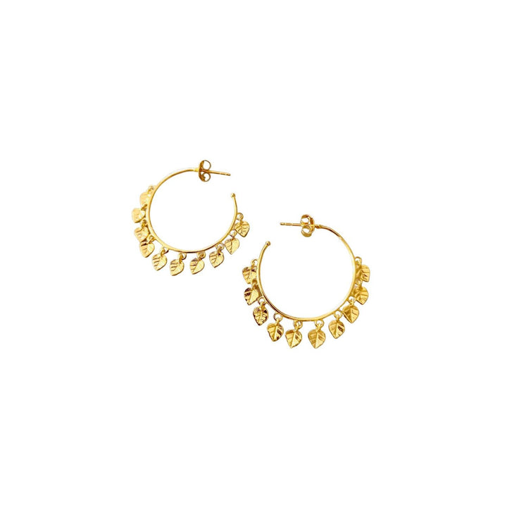 These Peepal Leaf Hoops by Rize shimmer with symbolic meaning and artistry. Each heart-shaped leaf represents prosperity, enlightenment, and spiritual growth, inspired by the sacred Bodhi tree. Blending boho spirit with luxury, these hoops celebrate heritage and craftsmanship with modern elegance.