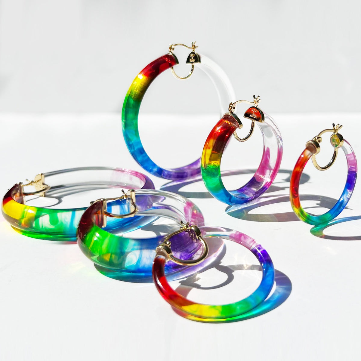 Feeling groovy? These Tie-Dye earrings are a fun and vibrant way to bring back 1960s nostalgia. You're never too old to indulge in the psychedelic art of fashion. The watercolor like design is unique to each piece and will instantly brighten up your day. These earrings are handcrafted with 14K gold-plated sterling silver. A portion of all sales of this earring will be donated to The Trevor Project.