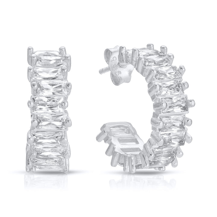Add a little color and show off your vibrant personality with these Mini Baguette Hoop Earrings. Made using 925 sterling silver, these earrings feature a French-pave setting with baguette crystals. Available in an assortment of 6 colors including lilac, rainbow, and aqua blue, you’ll have the perfect shade to match any mood or outfit. 925 Sterling Silver Jewelry is known for its amazing shine! Our Jewels are dipped it 14K gold to give you it that extra gloss !