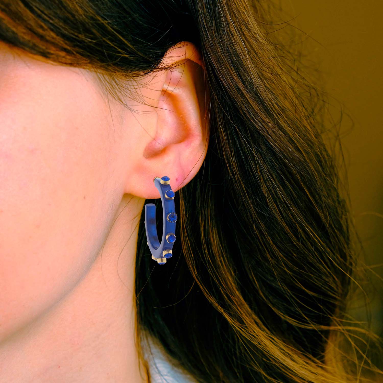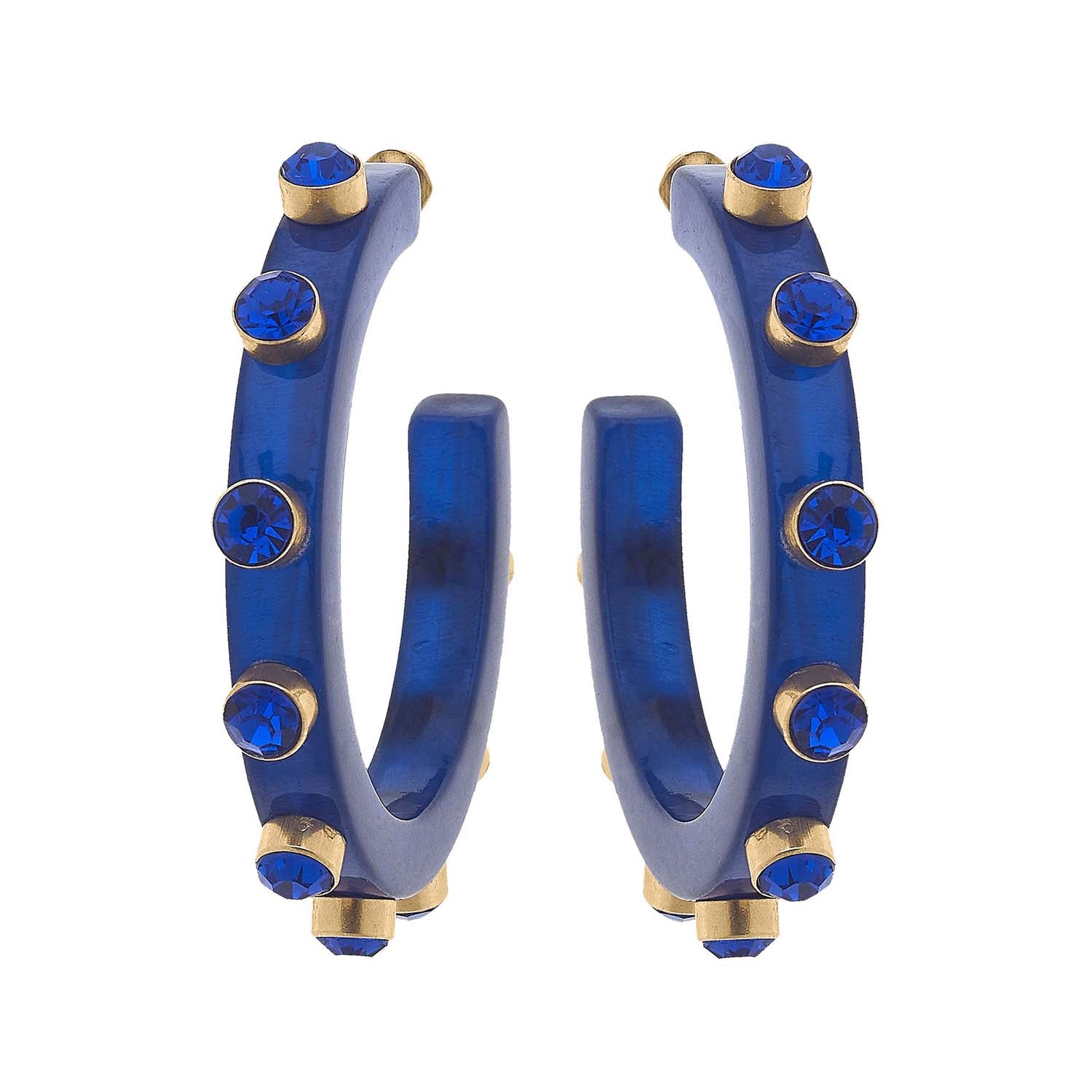 Elevate your ensemble with our Translucent Navy Sapphire Hoop Earrings, adorned with shimmering sapphire crystals. These lightweight and versatile earrings are a timeless addition to any wardrobe, offering effortless elegance and sophistication. Crafted with translucent navy sapphire resin, these hoops exude a subtle yet captivating allure that is perfect for any season. The addition of sapphire crystals adds a touch of sparkle and refinement, elevating the overall aesthetic and catching the light with every movement. .