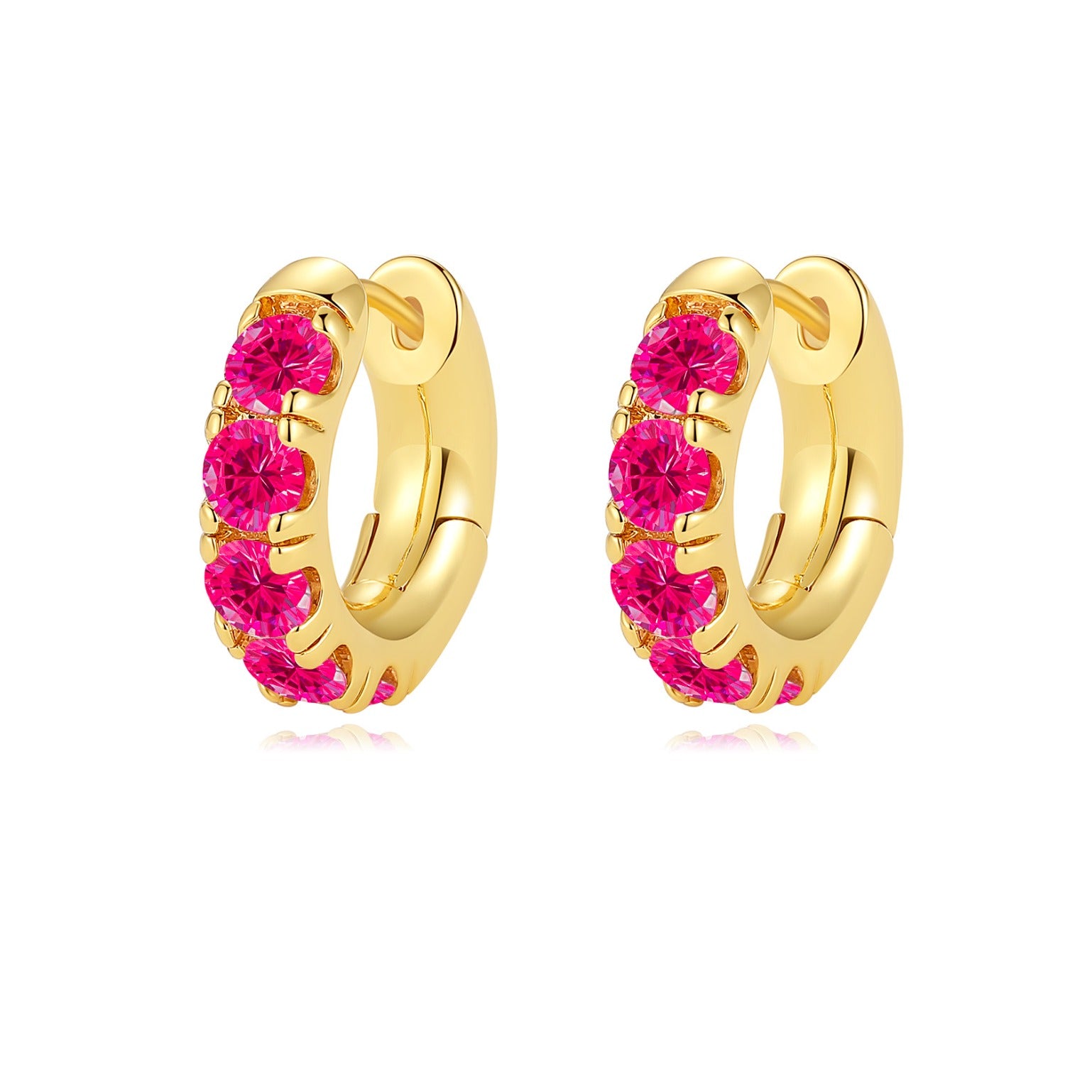 Daniela Gold Huggie Hoop Fuchsia Pink Zirconia Earrings