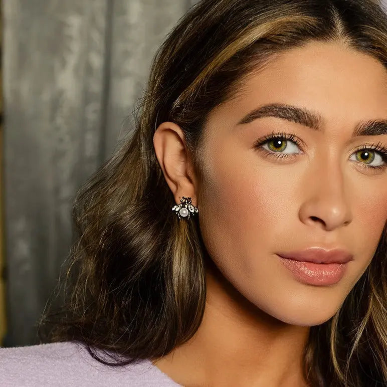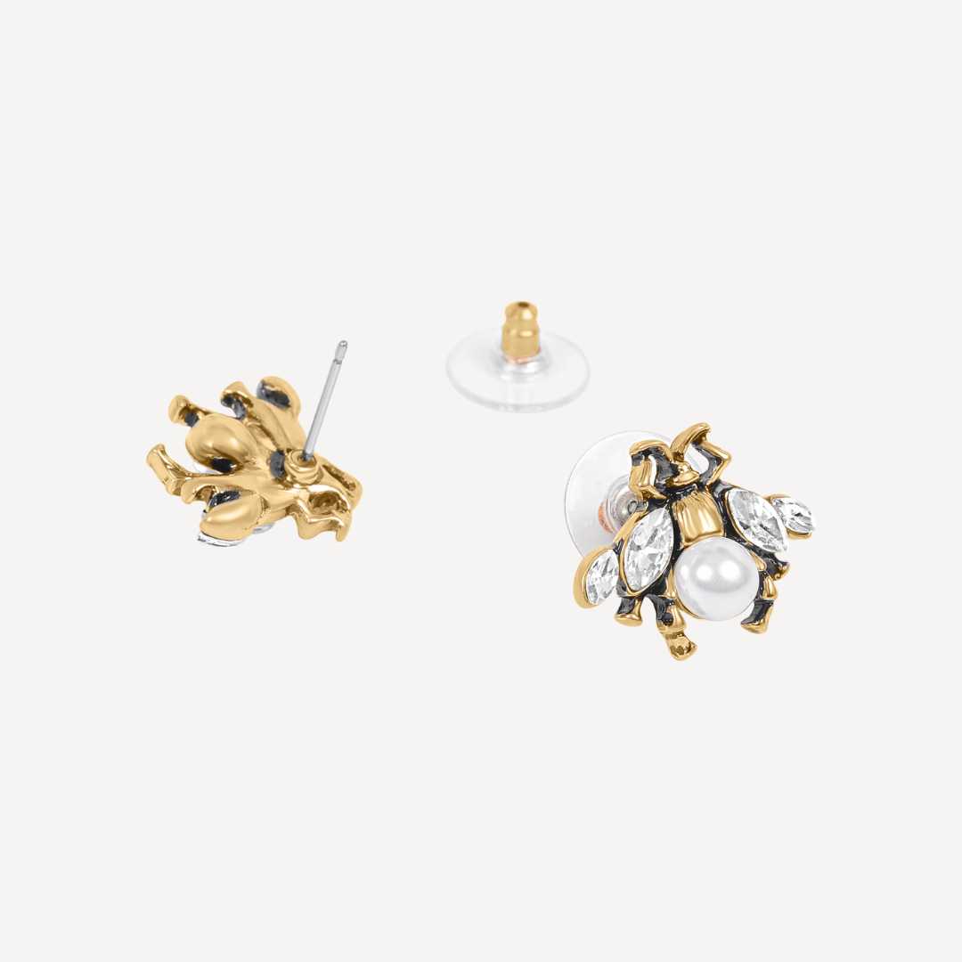 Discover Margot Bardot's exquisite Bee Earrings, where brilliance meets nature-inspired elegance. Crafted from 14k gold-plated nickel-free materials with 925 silver posts, these earrings feature shimmering simulated pearls and sparkling gems that effortlessly elevate any ensemble. Perfect for those who appreciate intricate details and timeless design, these lightweight earrings add a touch of sophistication to both casual and formal looks. Elevate your style with Margot Bardot's Bee Earrings and embrace the beauty of nature with every wear.