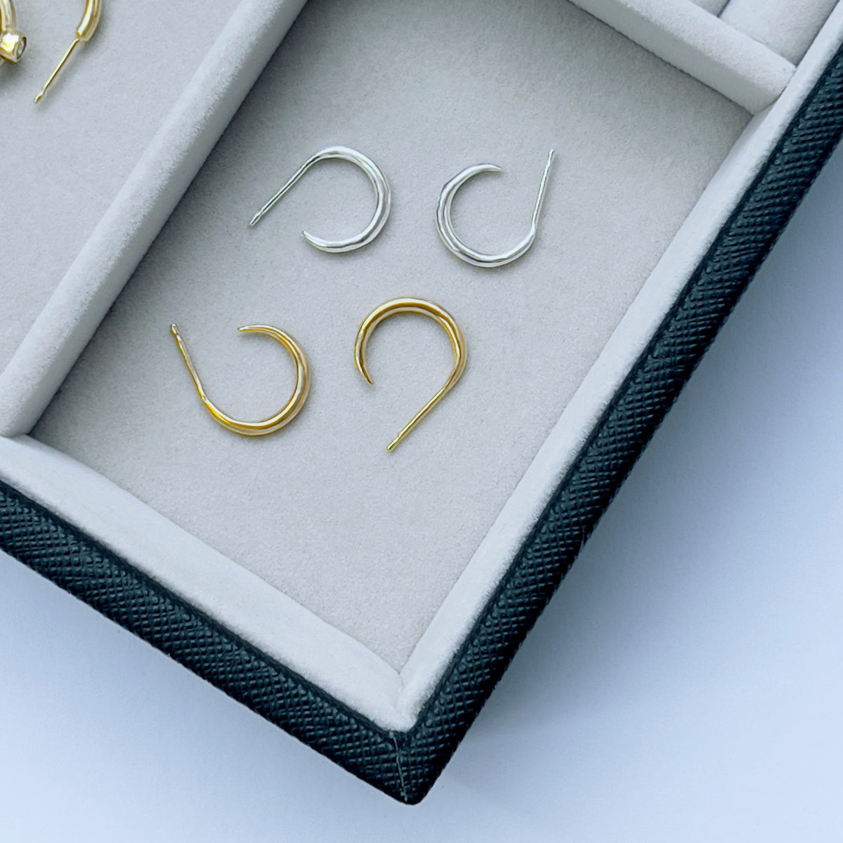 Introducing the Hallie Hoop earring in 18k gold vermeil by designer Tory Long. This is the essential everyday hoop that every outfit needs. The Hallie takes the simple hoop and adds tapered ends which form a gradual spike for a sleek look. 18k Gold Vermeil is the process of applying a thick layer of gold to sterling silver, providing a high quality, durable finish.