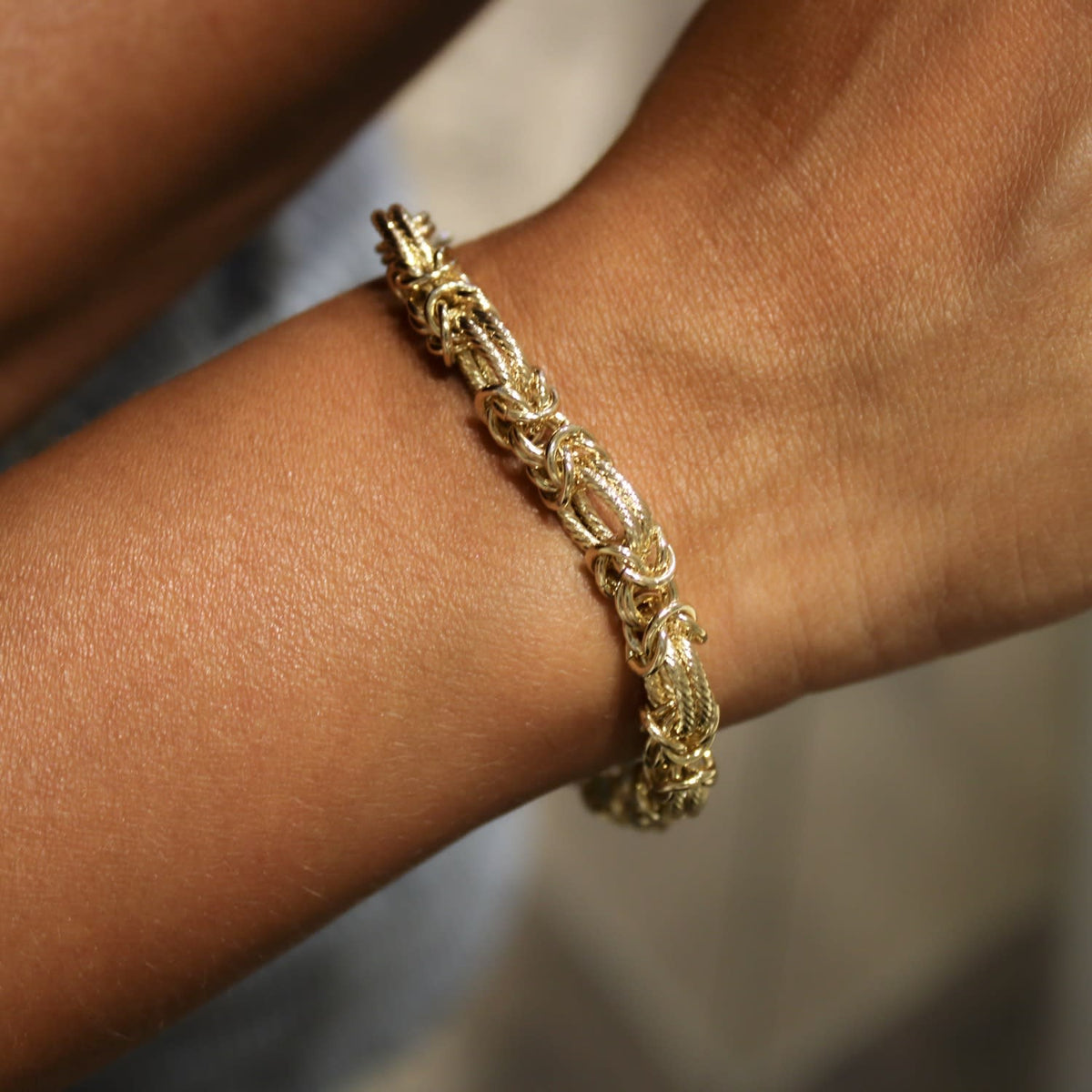 This bracelet features a sailor's knot design. It is rhodium-plated, hypoallergenic, and anti-tarnish. The base material is not explicitly stated, but the care instructions mention sterling silver.