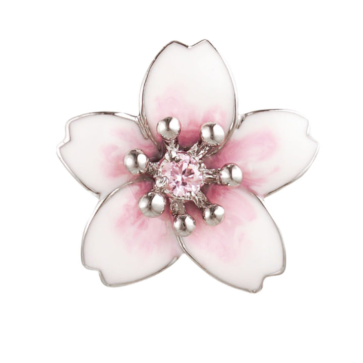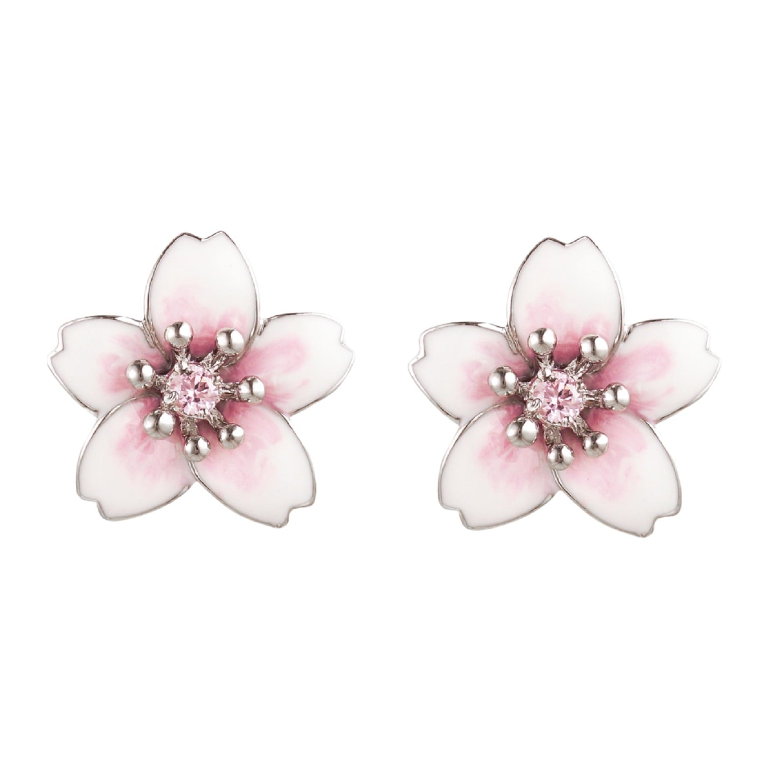 Zirconia & Enamel Flower Earrings, Series Sakura
