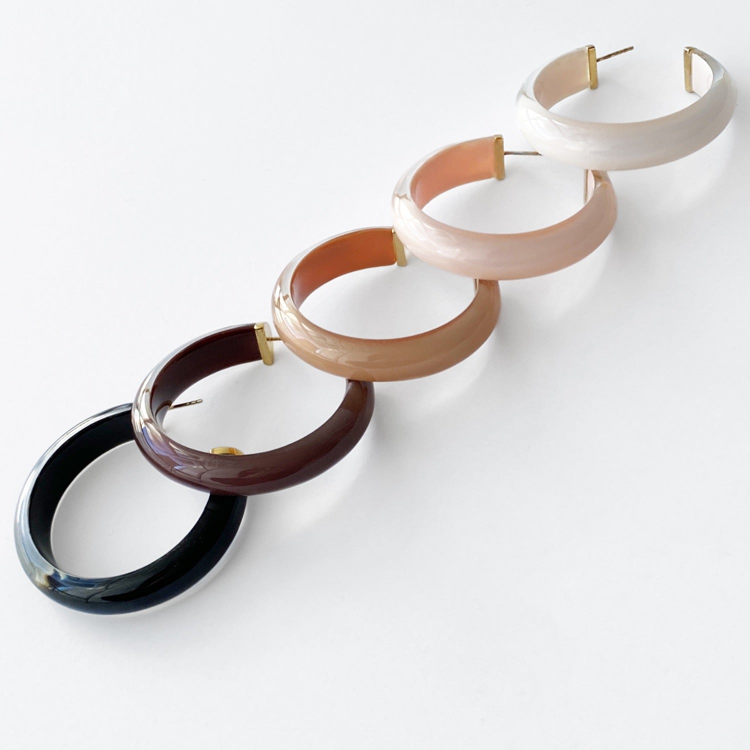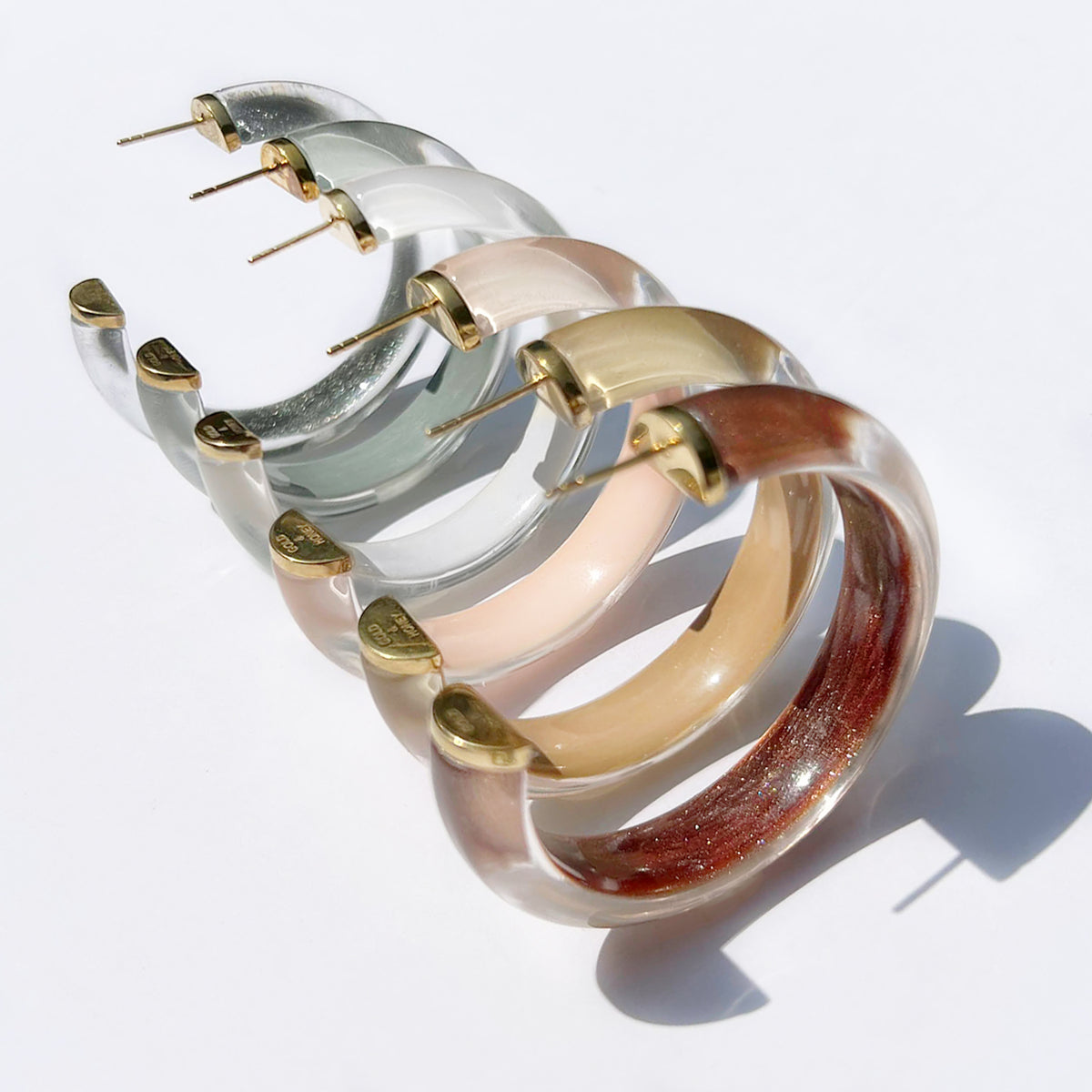These are a fun and chic Illusion Hoop! They are light weight, so you can wear them all day long without pulling on your ears. This is a great statement hoop for a pop of color and a bit of shimmer! The lucite hoops are handcrafted with hand painted enamel and gold-plated sterling silver posts.