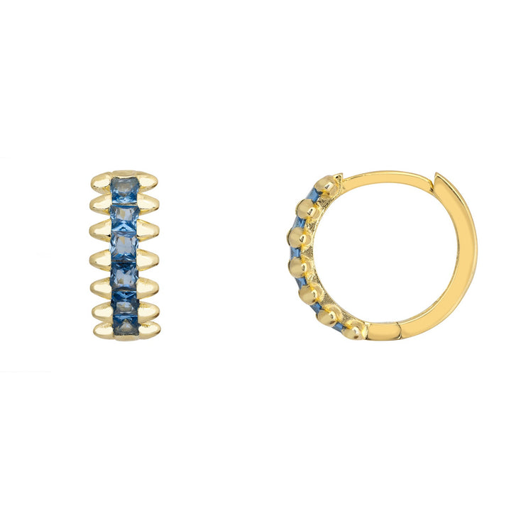 Add a little sparkle to your jewellery box with our new Huggie Hoop Earrings London Blue Topaz Gold. Perfect for everyday wear, these stylish earrings add a touch of sophistication and a pop of colour. These earrings feature beautiful lab-created, baguette-cut London Blue Topaz gemstones along the front, making them a statement piece you'll love to show off! The stunning London Blue Topaz is the birthstone for December and is known to symbolize love and loyalty. These petite earrings effortlessly transition from day to night. Whether you're out shopping or enjoying dinner with friends, you'll look simply stunning.