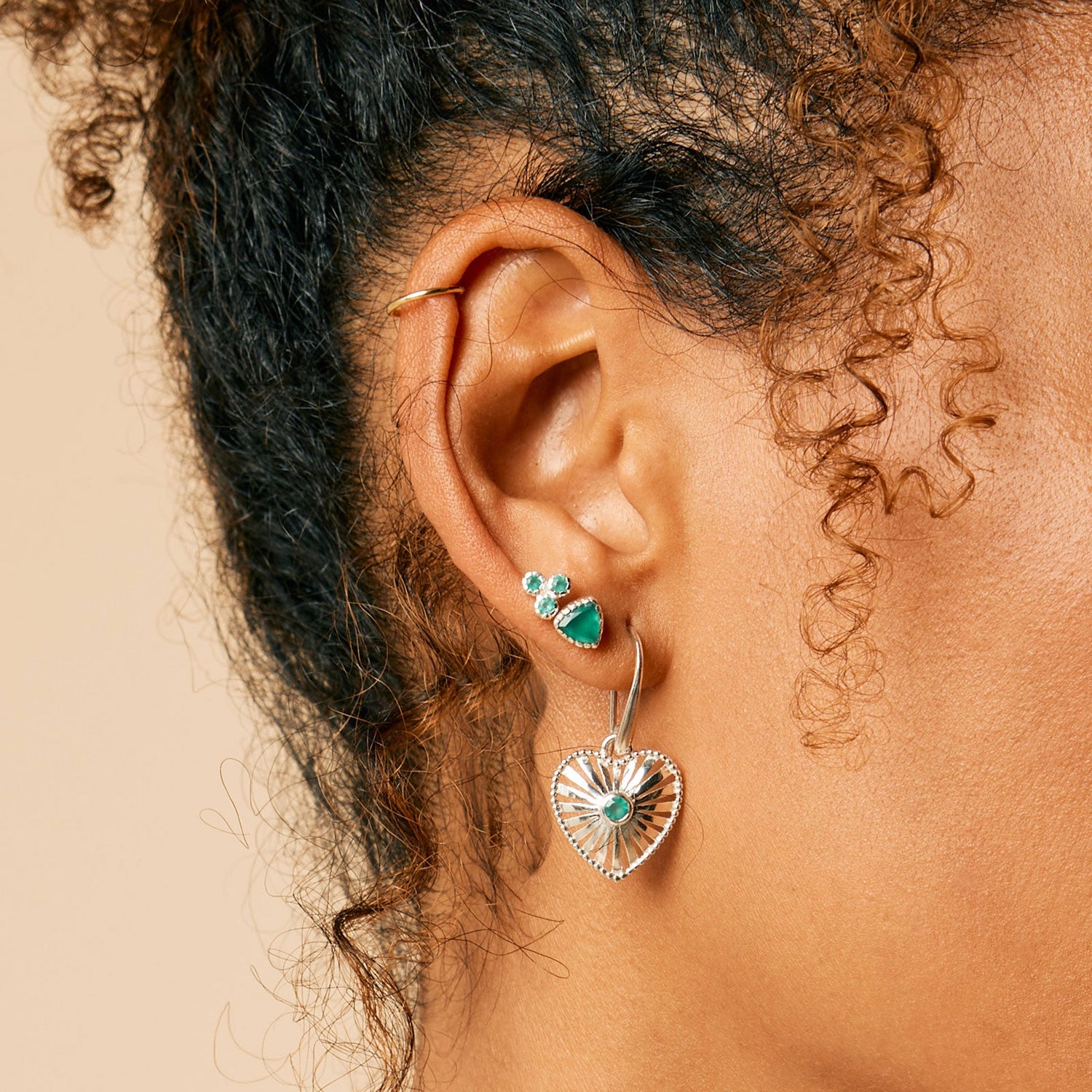 Elevate any ear stack and embrace mental clarity with these Trillion Green Onyx Studs. With ethically sourced gemstones, recycled silver, and protective bezel settings, these sustainable stud earrings belong in every Fairtrade jewellery collection. Patience, growth, mental clarity.
