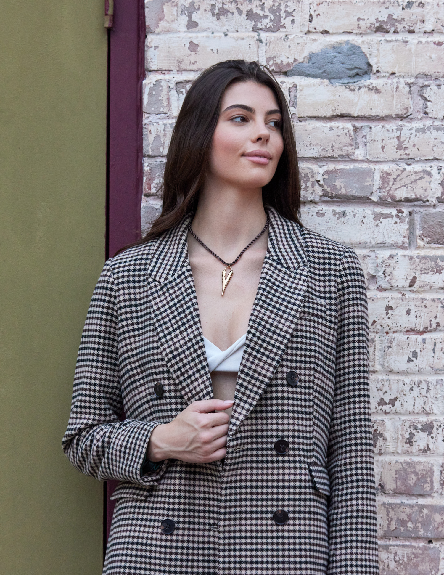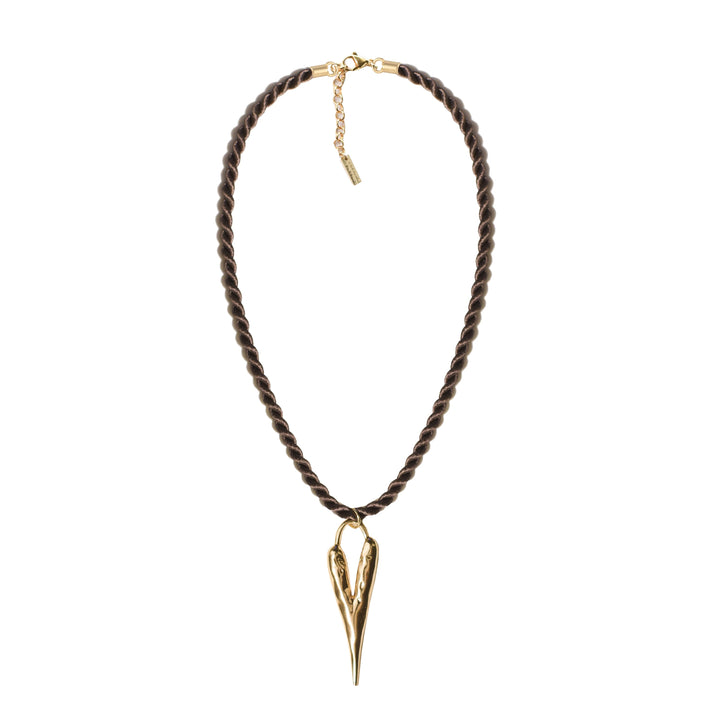 Gold plated brass. Real silk cord. Handmade (with good vibes) in the USA. Be trendy yet timeless with this unique, handcrafted piece. Versatile enough to dress up for evening, or down for day, it will quickly become one of your favorite accessories in your wardrobe. From beach to brunch, dinner to drinks, your new piece will surely catch plenty of compliments!