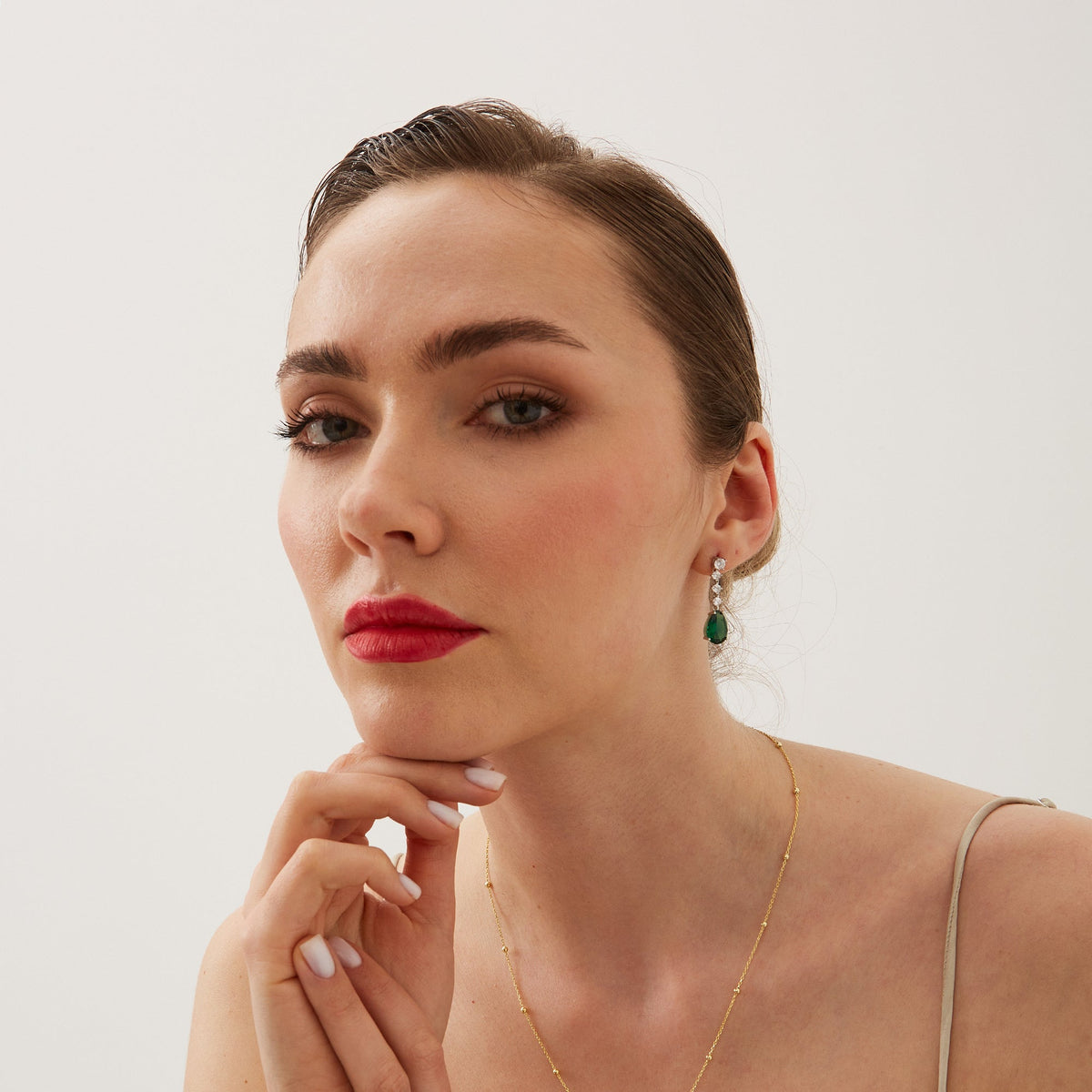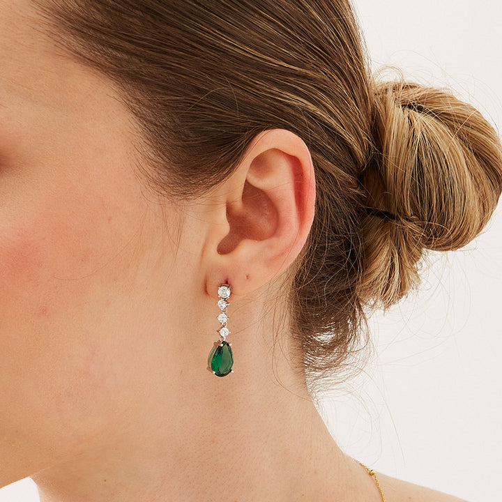 These Pear Green Sterling Silver Drop Earrings by Spero London are an exquisite and glamorous accessory. The high-quality sterling silver is adorned with dazzling cubic zirconia stones in a mesmerizing pear shape, designed to catch the light and turn heads. These earrings are a perfect combination of elegance and sparkle, ideal for any special occasion.
