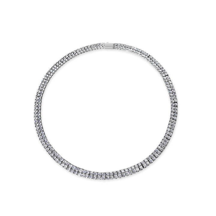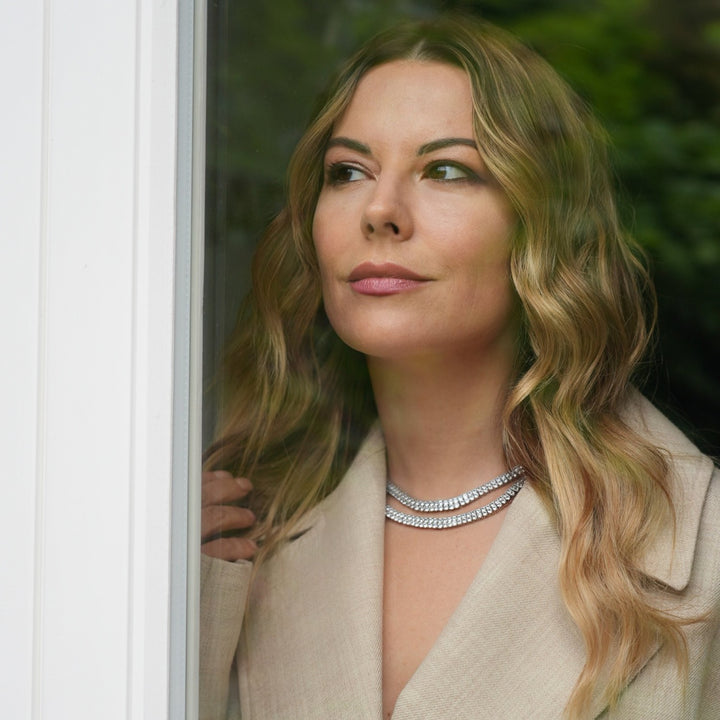 Introducing an exclusive collaboration with renowned stylist Juliet Angus on a collection of statement jewellery. Adorn your décolletage with timeless elegance and shine bright in our tennis necklace. Light reflects off the Cubic Zirconia gemstones exquisitely; it will certainly not go unnoticed. Available in two sizes, layer for a sparkling statement.