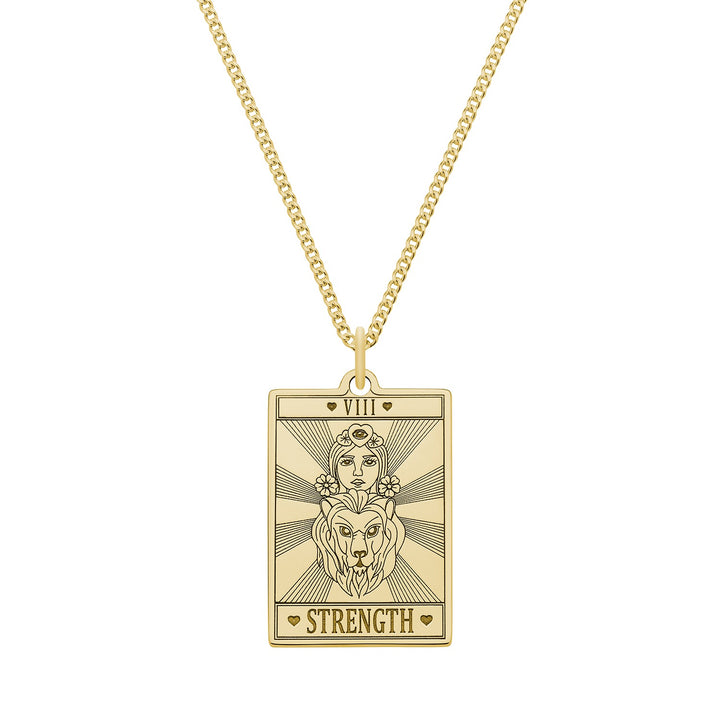 Small 9Ct 375 Gold Strength Tarot Card Necklace