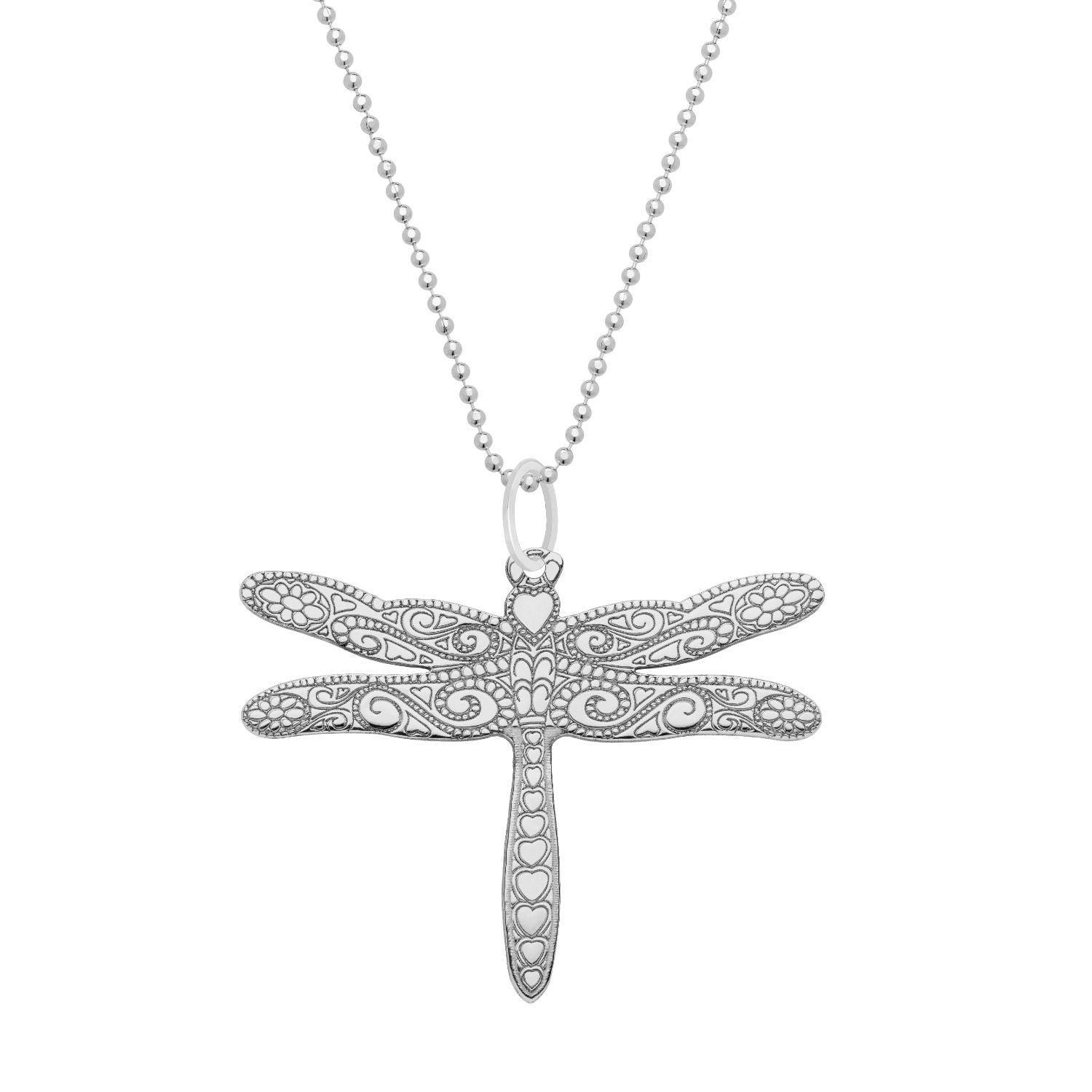 Large Silver Dragonfly Pendant Necklace