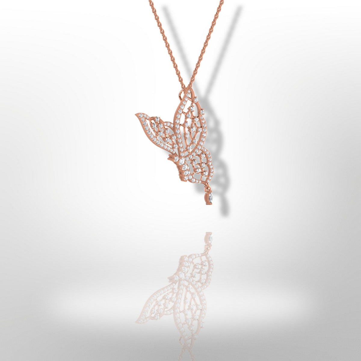 Crafted from high-quality 18ct rose gold, this necklace is not only beautiful but durable and long-lasting. The diamond butterfly charm is intricately designed, with each diamond carefully placed to create a breathtaking sparkle. Whether you're looking for a special gift for a loved one or a timeless piece to add to your own collection, this necklace is sure to impress. And with our competitive pricing, it's an affordable luxury that you won't want to miss.