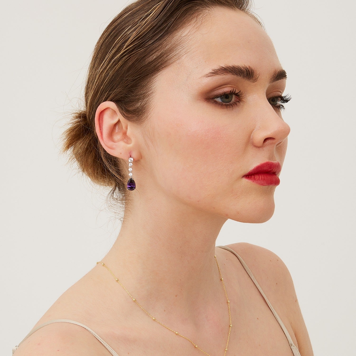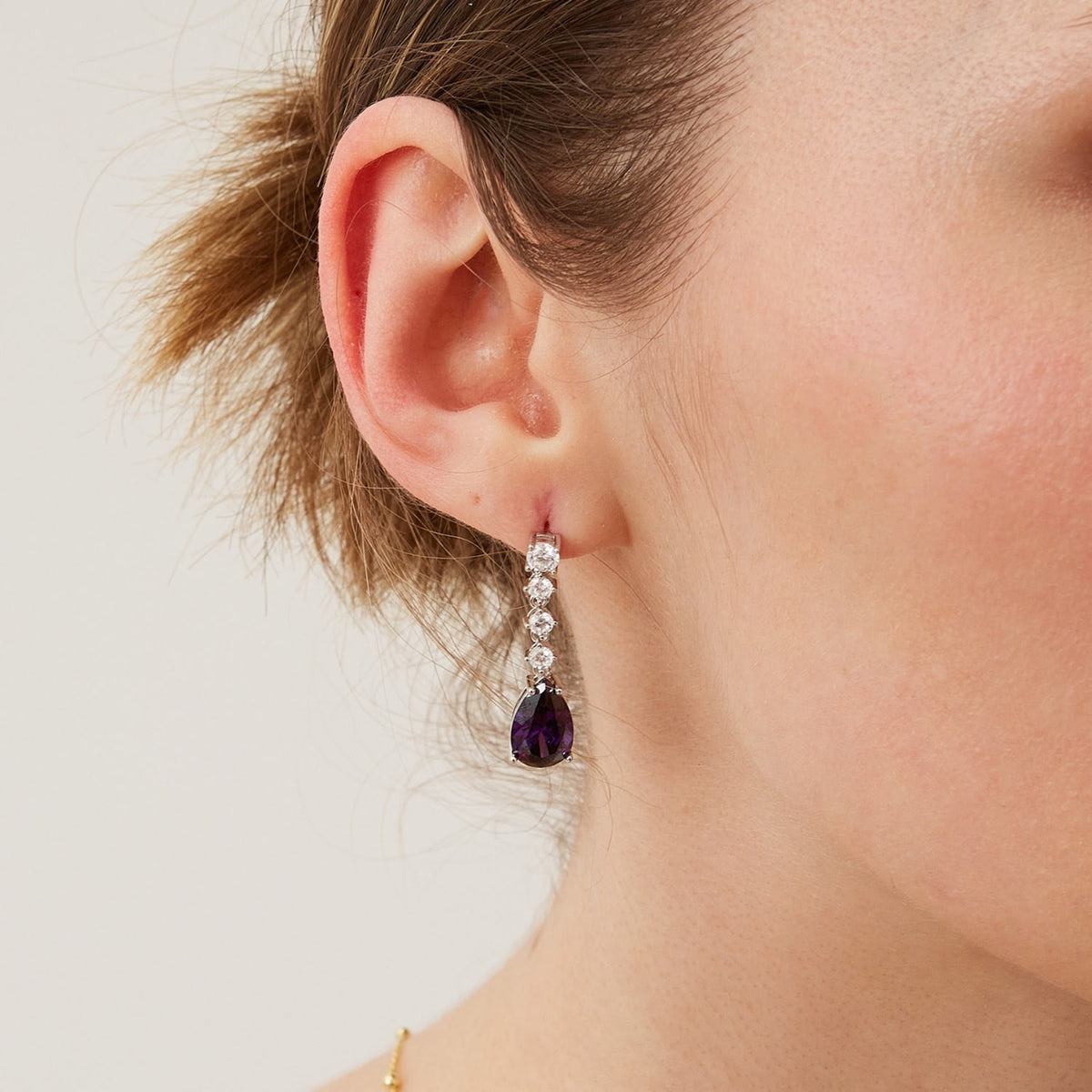 Pear Amethyst Purple Sterling Silver Drop Earrings