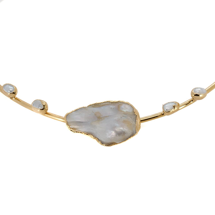 Discover the epitome of elegance with the Majestic Pearl & Gold Choker Necklace. This stunning piece is a perfect blend of luxury and style, making it an essential addition to your jewelry collection. Crafted with precision, the choker features a base of high-quality brass, meticulously plated with 24k gold. At the heart of this exquisite choker lies a beautiful pearl stone, adding a touch of uniqueness and grace. The pearl is carefully selected for its lustrous quality, enhancing the overall charm of the necklace.