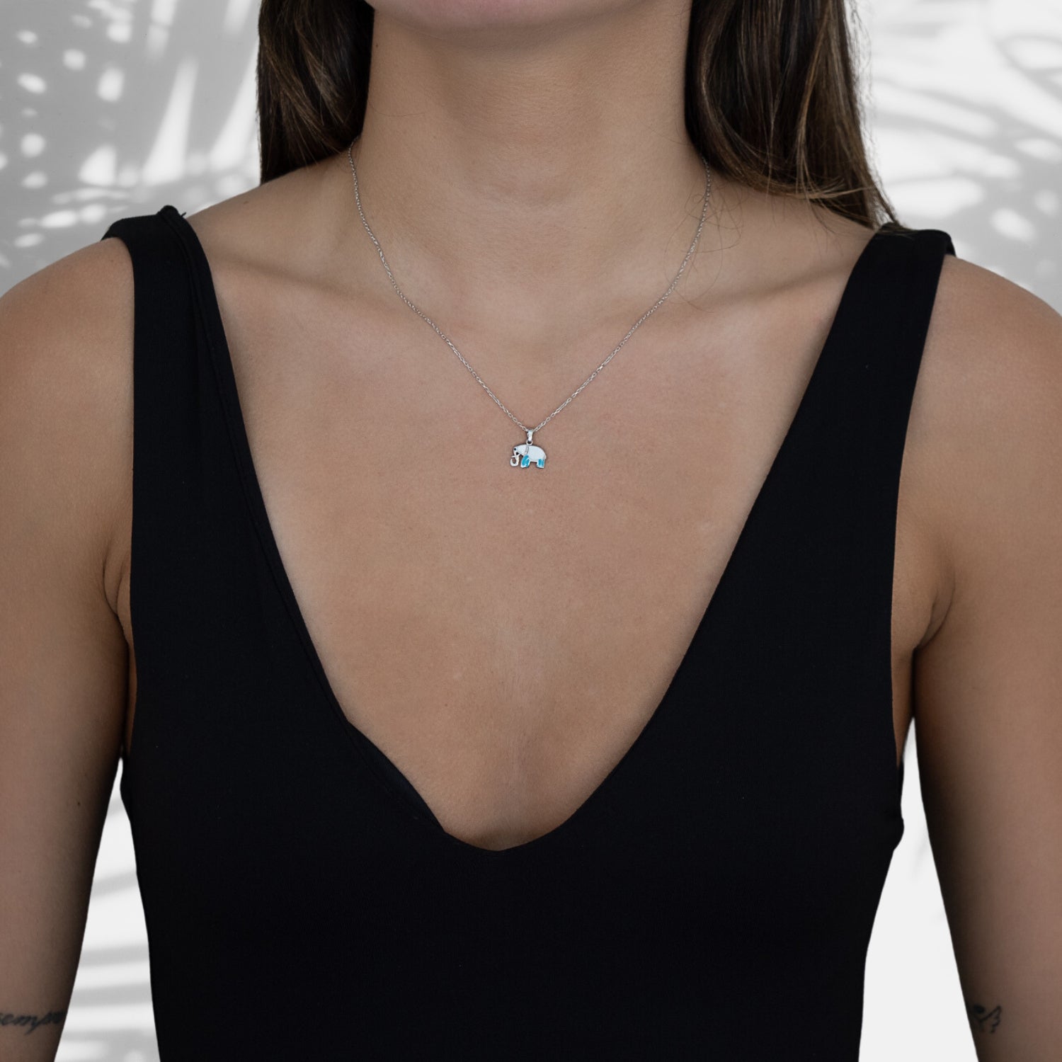 The Sterling Silver Turquoise Elephant Necklace is a stunning piece of jewelry for those who value unique and meaningful accessories. The lucky elephant pendant is intricately designed with sterling silver and enamel displaying exquisite craftsmanship. Elephants are often associated with wisdom, strength, and good luck, making this necklace a perfect talisman for those seeking positive energies in their lives. Whether worn for a special occasion or as an everyday accessory, the Sterling Silver Turquoise Elephant Necklace is sure to add a touch of elegance and personality to any outfit