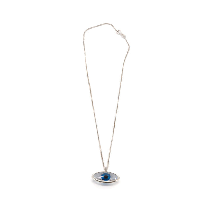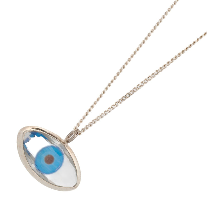 Protective Blue Evil Eye Glass Pendant Sterling Silver Necklace