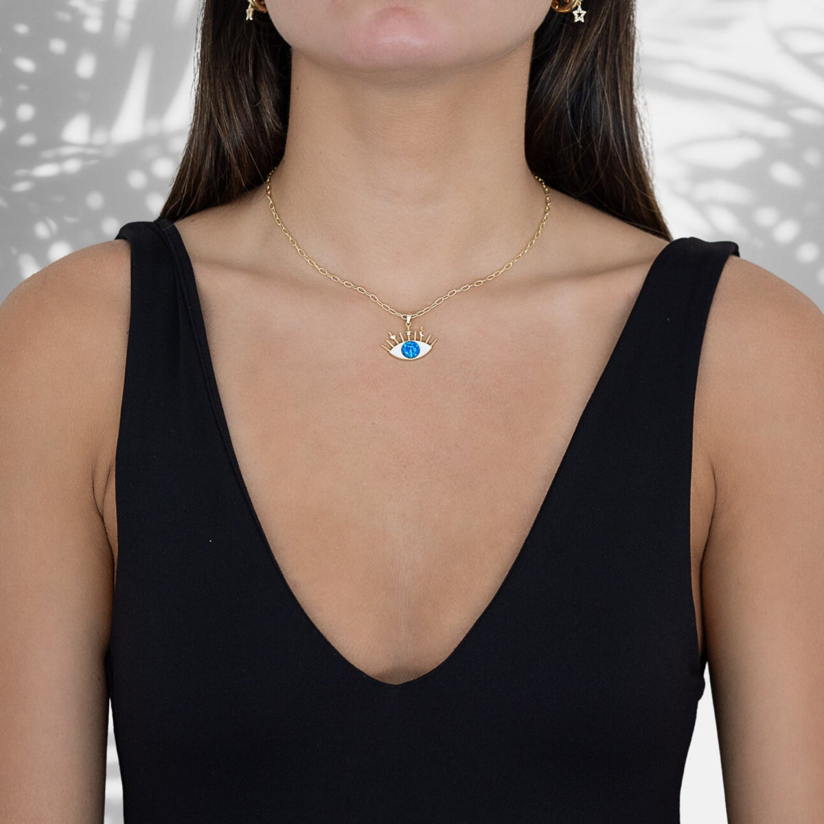 The Silver Blue Opal Evil Eye Necklace, a mesmerizing piece of jewelry that beautifully combines elegance and spiritual symbolism The centerpiece of this necklace is the enchanting evil eye pendant. The pendant is adorned with a captivating combination of white enamel and blue opal, creating a striking contrast that instantly draws the eye The Evil Eye symbol holds deep cultural significance across various traditions and is believed to protect against negative energies and bring good fortune. By wearing this necklace, you carry the symbolism and protective qualities of the evil eye, while also showcasing your unique sense of style.