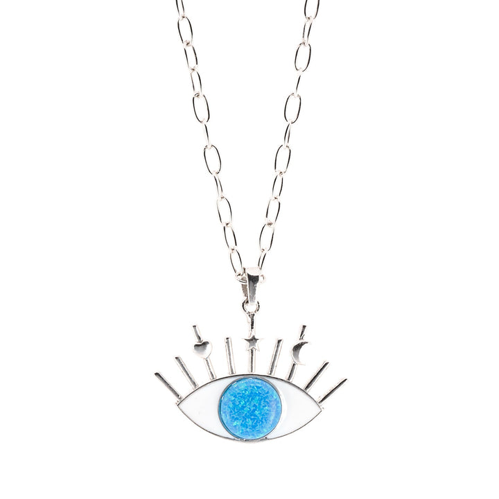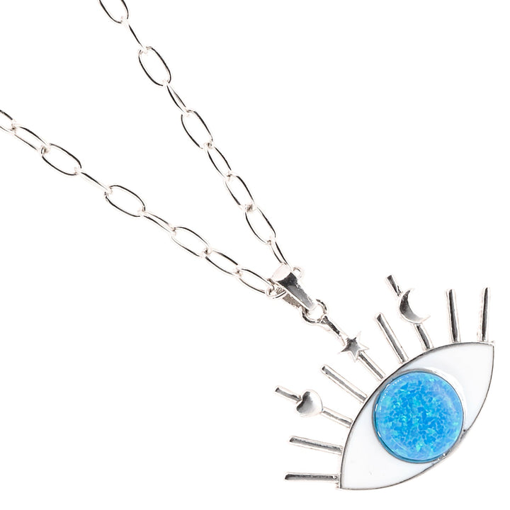 Silver Blue Opal Evil Eye Necklace