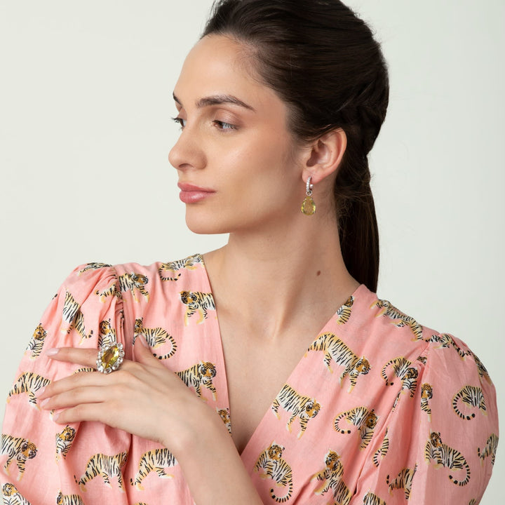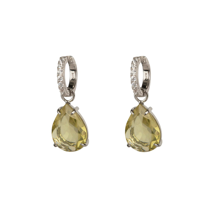 These huggies are crafted with semi-precious stones. They are designed to be worn alone or with an additional pear-shaped drop.