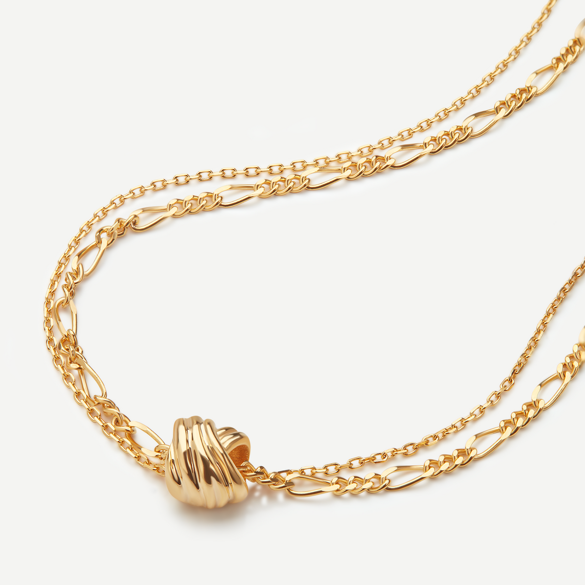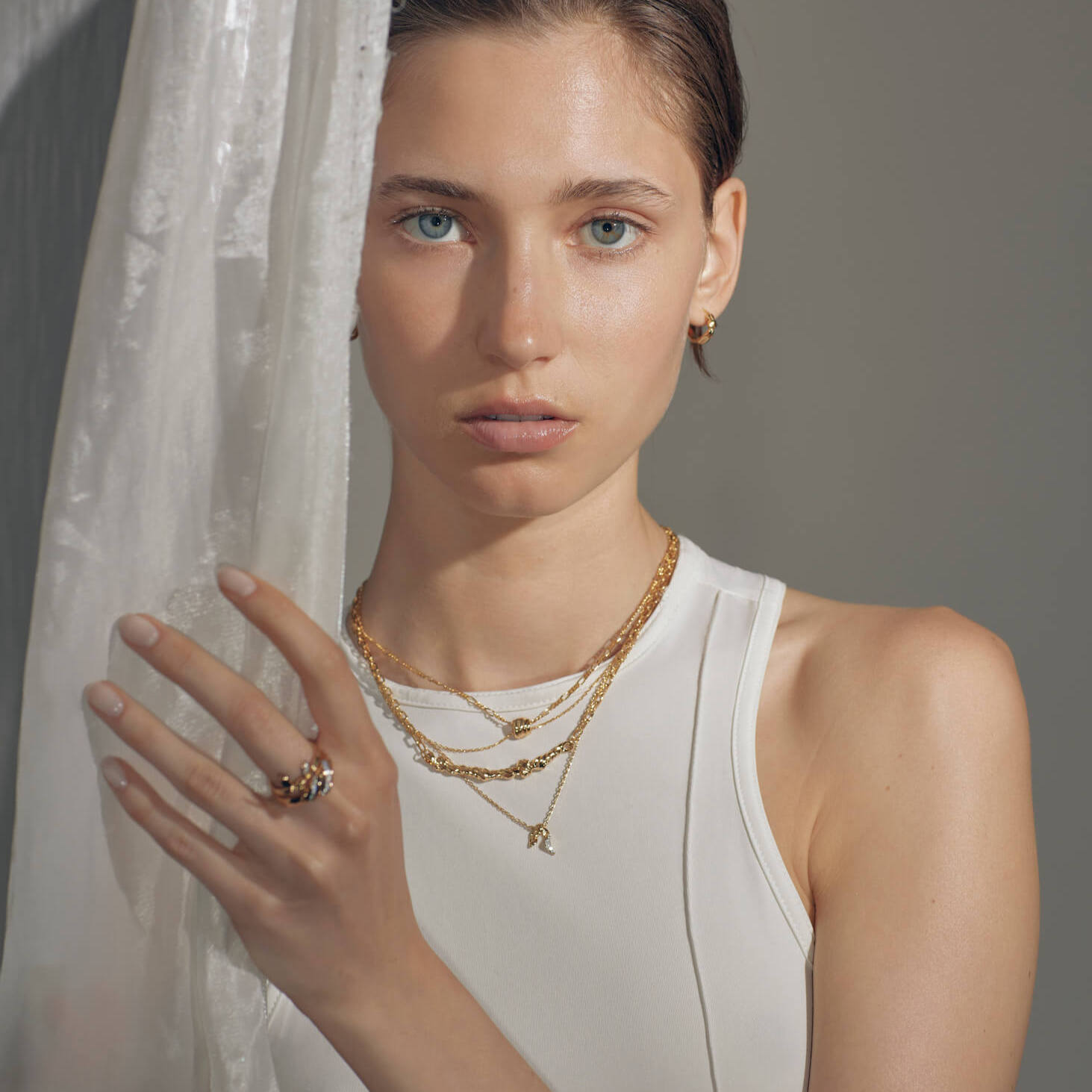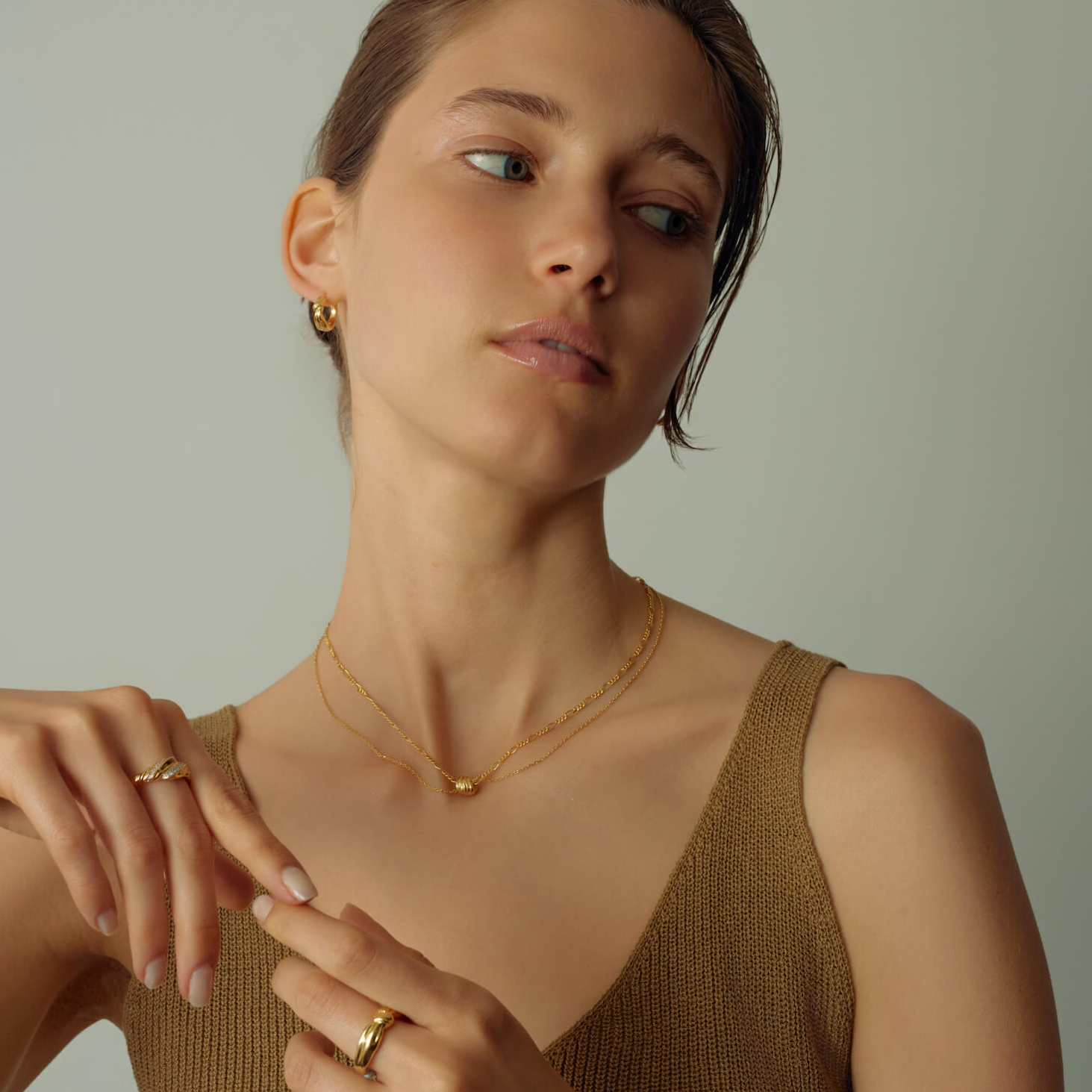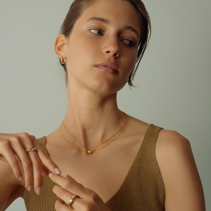 The Double Aether Gold Necklace embodies the essence of duality and connection. Crafted with intricate details, this piece captures the fluidity of life's transitions, making it a perfect symbol of personal growth and bonding.